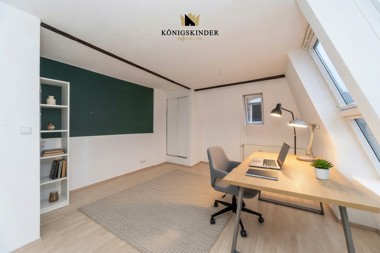 Durch die Lage im Dachgeschoss ist die Wohnung hell und ruhig gelegen. Besonders in einem der Zimmer schaffen große Fenster ein helles und freundliches Raumgefühl, das sich ideal als Wohn-, Schlaf- oder Arbeitszimmer eignet. Die erhöhte Lage bietet zudem einen freien Blick über die Dächer von Stuttgart.