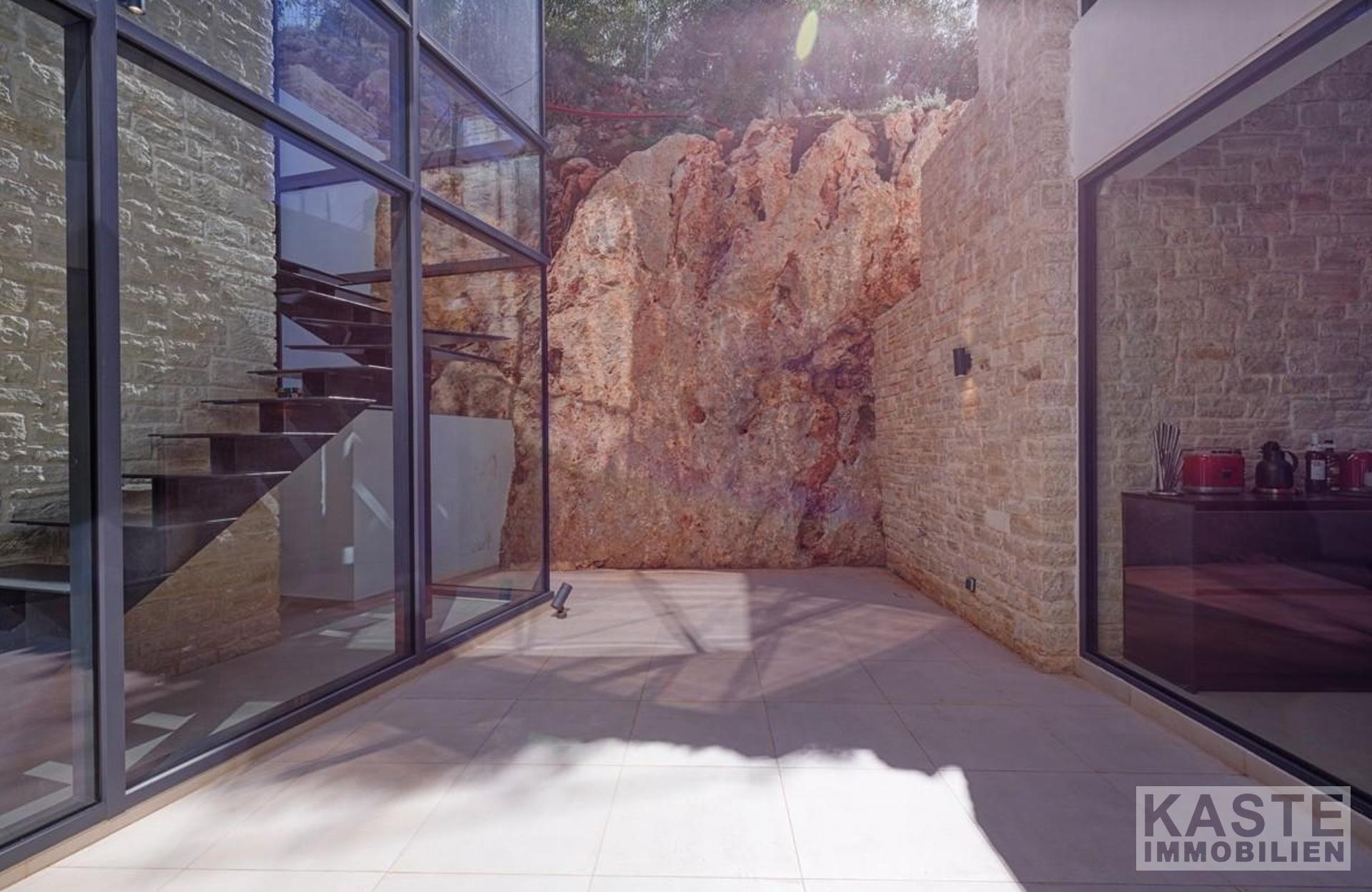 Das Innere der Villa strahlt Raffinesse und Stil aus, mit einem offenen Grundriss, der die Wohnräume nahtlos integriert und das natürliche Licht maximiert. Die moderne Küche ist ein wahrer Traum für Kochliebhaber, ausgestattet mit modernsten Geräten und eleganten Oberflächen. Treten Sie hinaus in den privaten Innenhof, eine ruhige Oase, in der Sie sich entspannen und dem Trubel des Alltags entfliehen können.