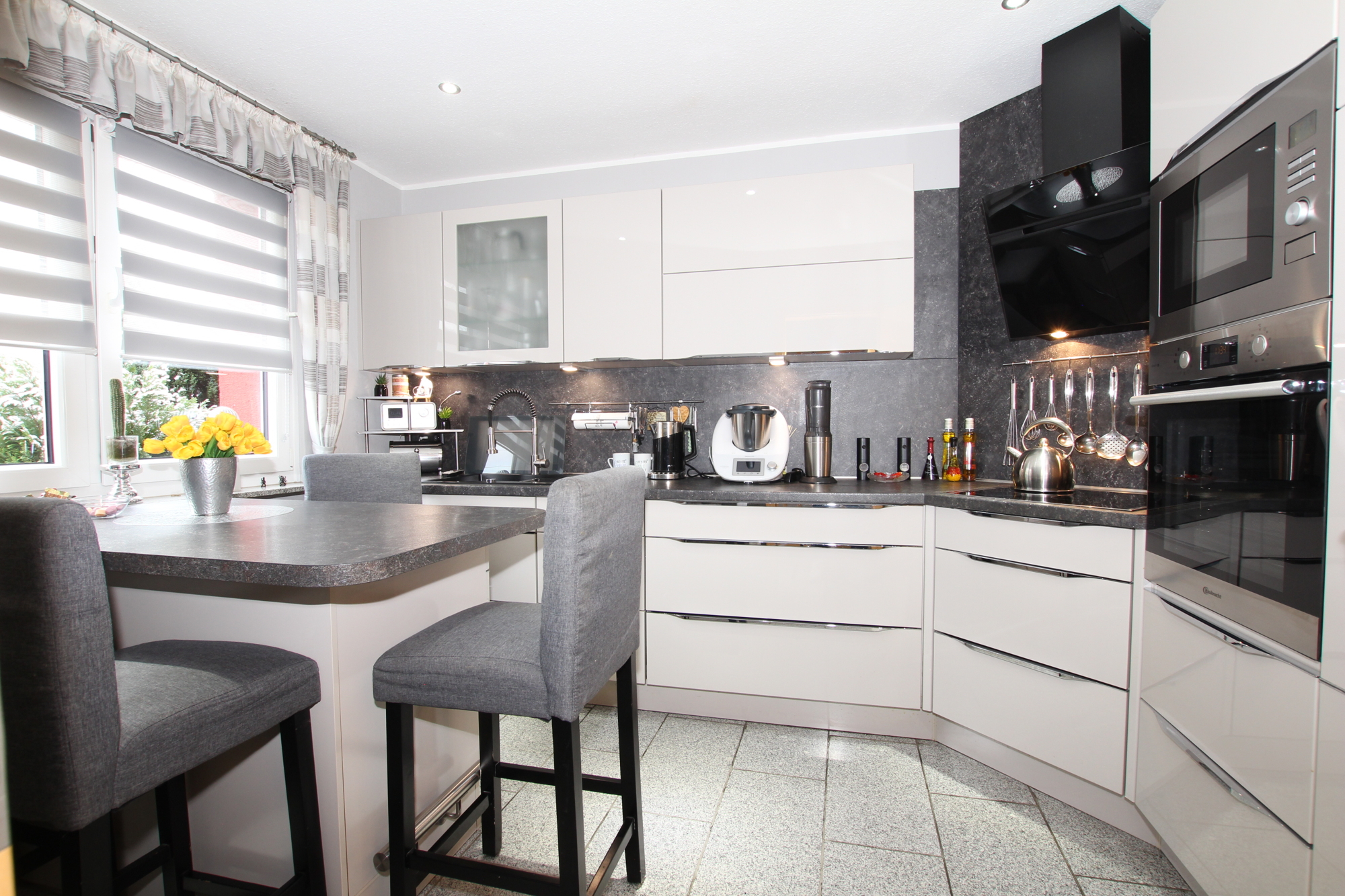 Beim Betreten des Hauses befindet sich linker Hand die Küche. Sie kann nach Absprache mit den Eigentümern gerne inklusive der vorhandenen Bauknecht-Geräte übernommen werden.