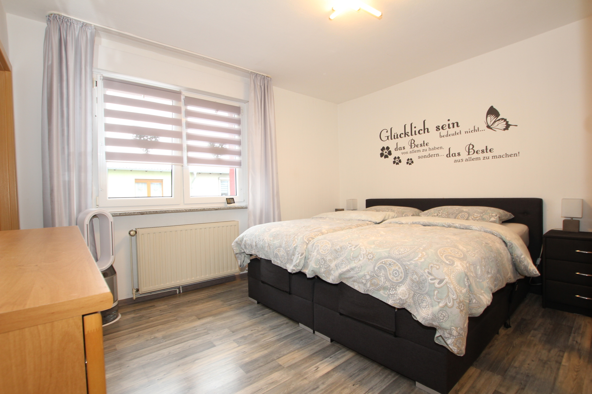 Der Dachboden wurde durch eine Gaube erweitert, wodurch zusätzliche Wohnfläche entstanden ist. Der Raum ist offiziell als Wohnraum genehmigt und bietet neben dem Wohnbereich einen praktischen Abstellraum.