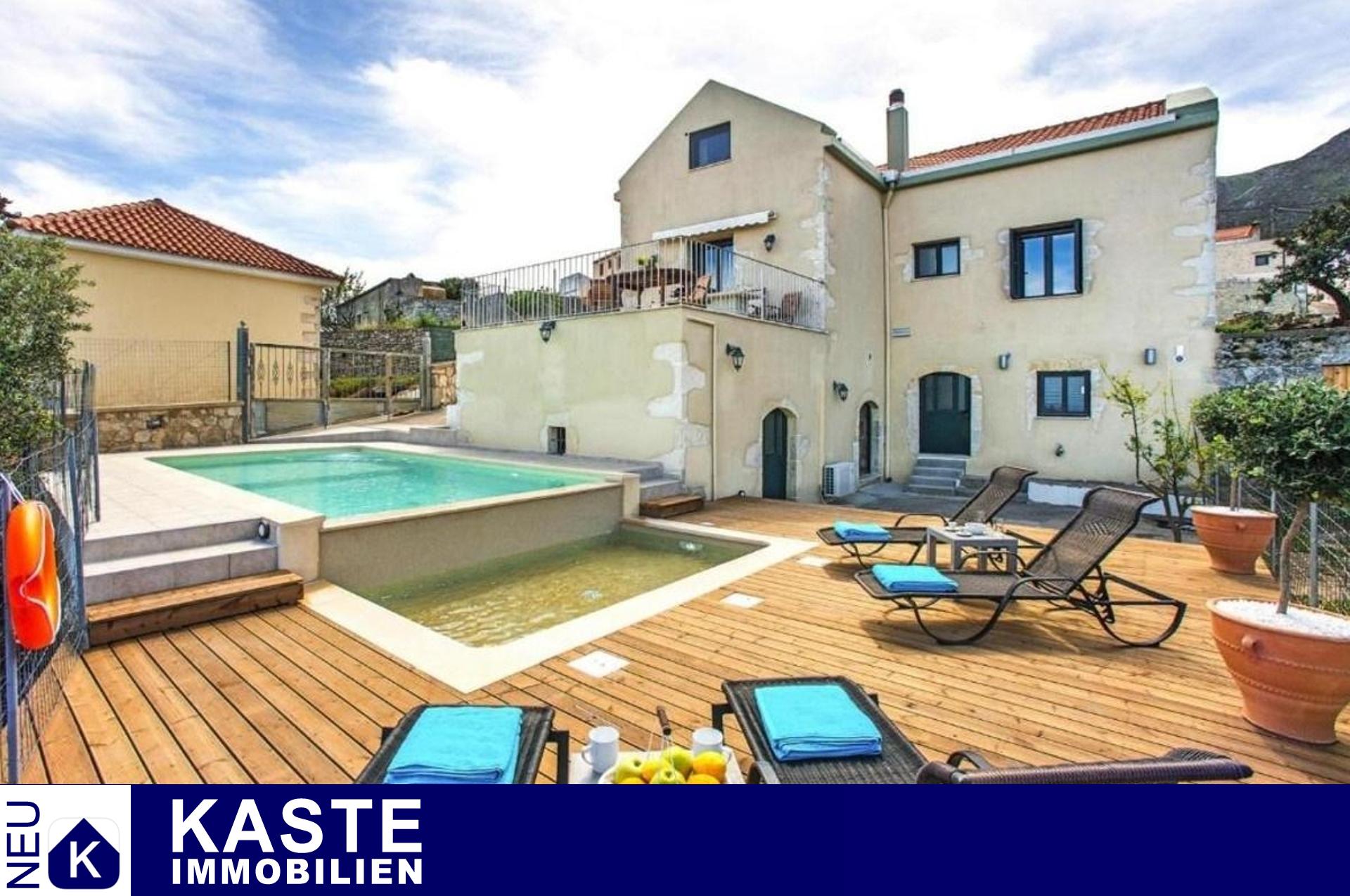 Erleben Sie den Inbegriff von Luxus und Ruhe in dieser atemberaubend renovierten traditionellen Steinvilla mit 5 Schlafzimmern und 4 Bädern. Vor der Kulisse eines atemberaubenden Panoramablicks auf das Meer und die Berge bietet dieses bemerkenswerte Anwesen einen wahrhaft idyllischen Rückzugsort.