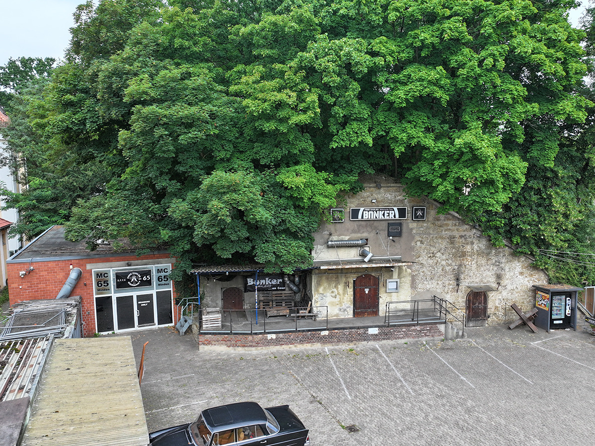Vom Schutzraum zur Kultstätte. Was einst der Sicherheit der Stadt diente, ist heute ein fester Bestandteil des urbanen Lebens: Der Bunker liegt zentral am Königswall, eingebettet in das kulturelle Herz Mindens. Als etablierte Event- und Club-Location hat er sich längst einen Namen gemacht – mit regelmäßigen Veranstaltungen, Bühnenprogrammen und einer starken Strahlkraft weit über die Stadtgrenzen hinaus. Zum Angebot gehören noch zwei angrenzende Gebäude.