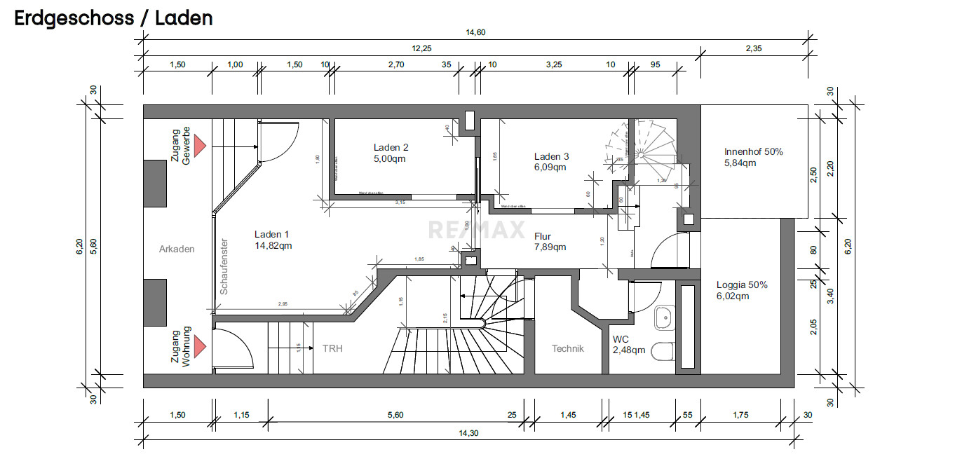 Wohnen und Arbeiten unter einem Dach – mit klarer Trennung und direkter Verbindung Die Einheit bietet im Obergeschoss ca. 57 m² Wohnfläche, die durch eine interne Wendeltreppe mit der ca. 48 m² großen Gewerbefläche im Erdgeschoss verbunden ist. Ideal für Freiberufler, Selbstständige oder Kleinunternehmer, die Wohnen und Arbeiten kombinieren möchten – funktional, kompakt und dennoch räumlich klar getrennt.