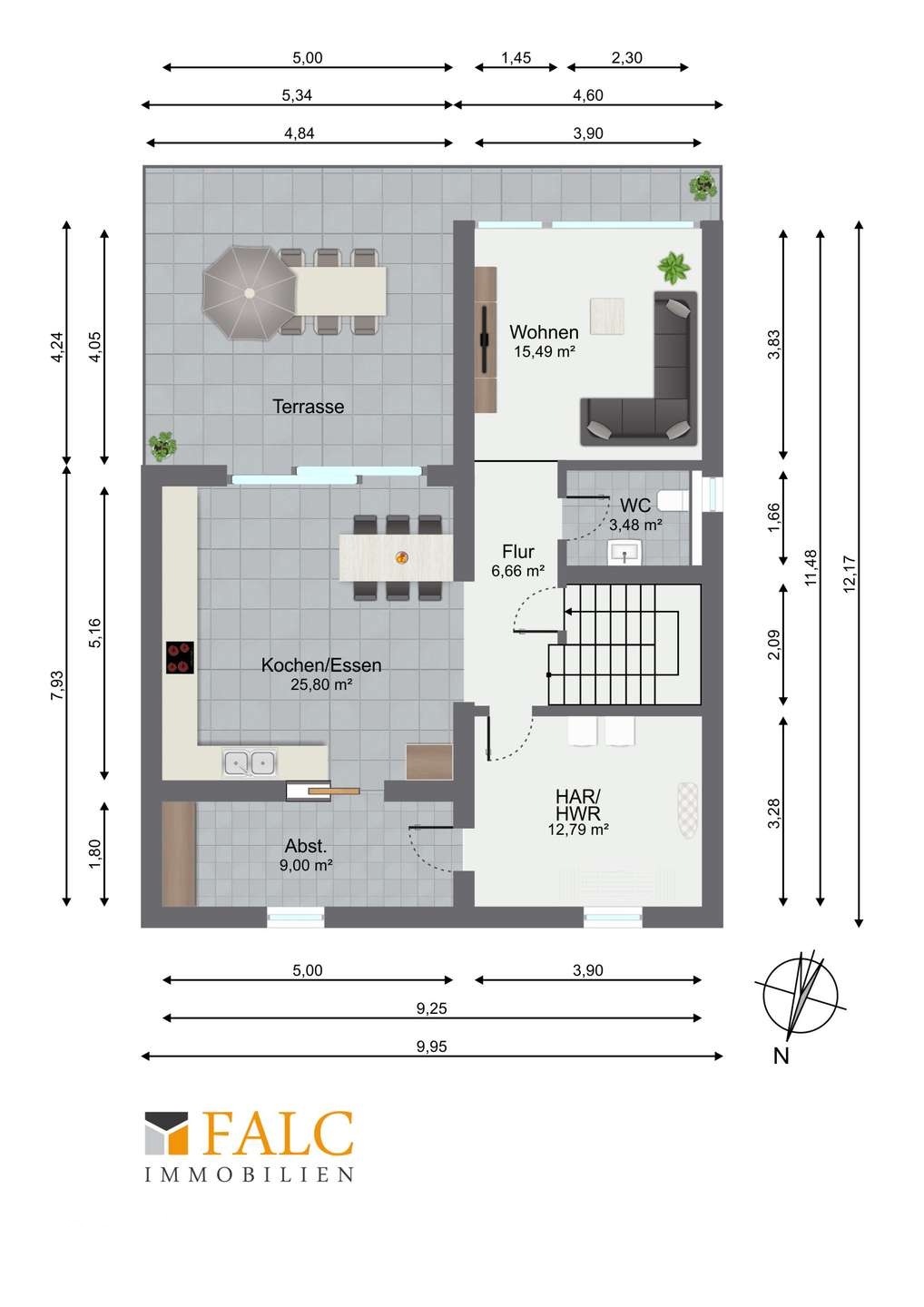 Der Garten bietet ausreichend Platz zum Spielen und Entdecken, während sonnige Terrassenbereiche ideale Voraussetzungen für gemeinsame Familienzeit schaffen.