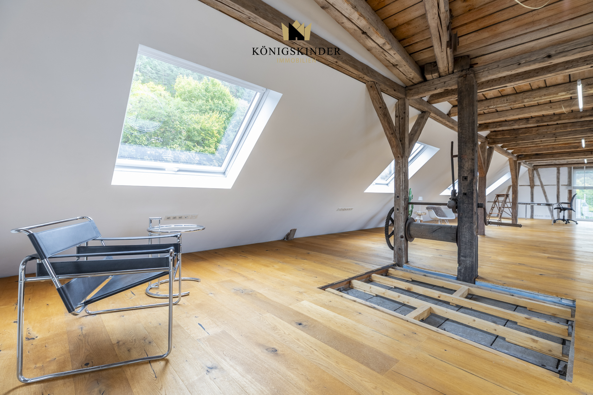 Echtholzboden, viel Licht und der authentische Industriecharakter machen diesen Ort besonders. Wer Raum sucht, um Ideen zu entwickeln, Projekte umzusetzen und gleichzeitig schön zu wohnen, wird sich hier schnell zuhause fühlen.