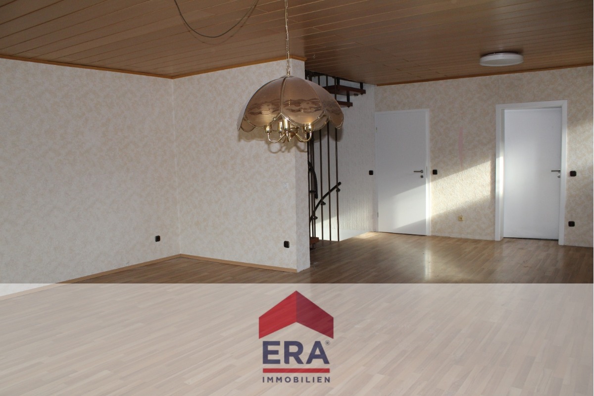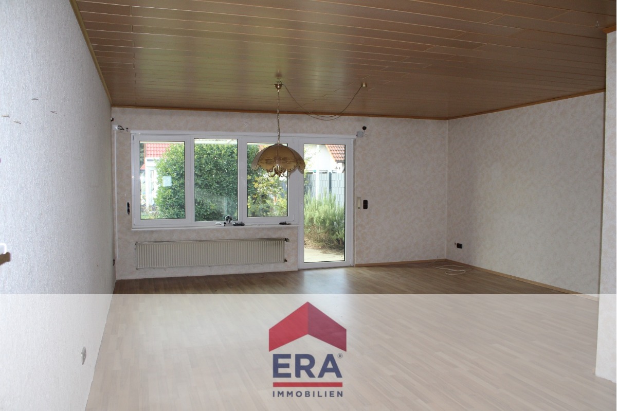 Vom Flur aus öffnet sich der Weg zum großzügigen Wohn- und Essbereich, der durch seine Offenheit und Helligkeit überzeugt. Direkt angrenzend liegt die Küche, die flexibel gestaltet werden kann – hier haben Sie die Möglichkeit, Ihre ganz individuellen Vorstellungen zu verwirklichen. Die große Fensterfront des Wohnbereichs bietet direkten Zugang zum Garten sowie zu einer kleinen, gemütlichen Terrasse, die perfekt für entspannte Stunden im Freien geeignet ist.