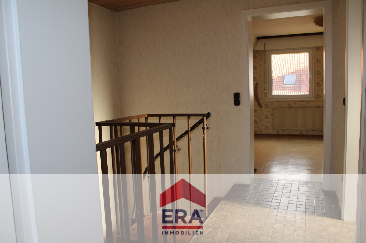 Über die Treppe gelangen Sie ins Obergeschoss: Dort erwarten Sie zwei gut geschnittene Schlafzimmer sowie ein Badezimmer, das im Jahr 2024 barrierefrei gestaltet wurde. Besonders hervorzuheben ist, dass eines der Schlafzimmer über direkten Zugang zum Balkon verfügt, von dem aus Sie einen schönen Blick in den Garten genießen können.