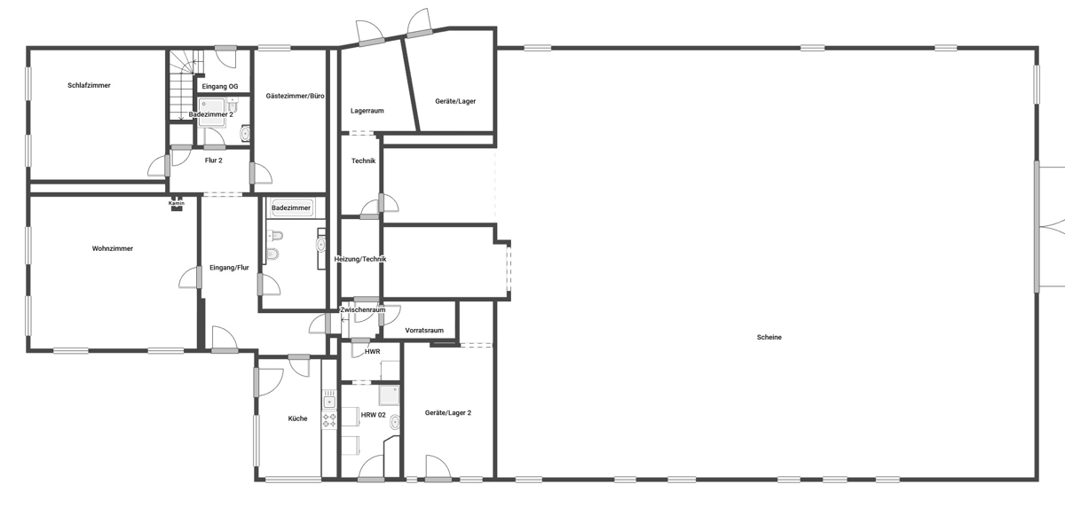 Die großzügige Scheune ist mehr als nur Nebengelass – sie ist Ihre Wachstumsfläche für zukunftsweisende Ideen: Atelier? Ferienloft? Werkstatt? Eventraum? Wer hier Großes plant, hat alle Möglichkeiten.