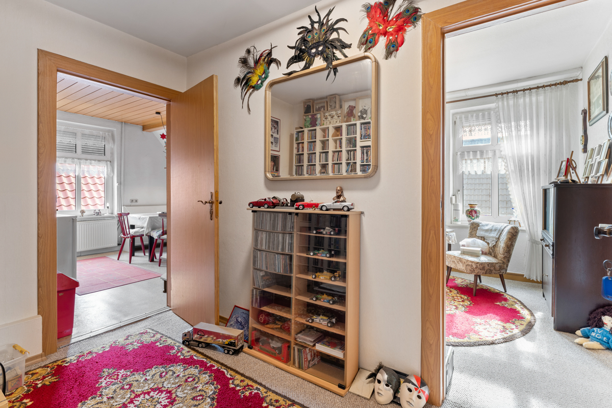 Über die Treppe erreichen Sie das Obergeschoss, das ebenfalls eigenständig als Wohnfläche genutzt werden kann. Hier wird das große Nutzungspotenzial des Hauses besonders deutlich. Vier gut geschnittene Zimmer bieten ausreichend Raum für ein individuelles Wohnkonzept – ideal für Kinderzimmer, Schlafzimmer, Gäste, ein Homeoffice oder ein zweites Wohnensemble innerhalb des Hauses. Auch hier steht ein Tageslichtbad mit Dusche sowie eine gemütliche Küche zur Verfügung, ergänzt die durch eine kleine Abseite als Stauraum. Über diese Etage erreichen Sie den Dachboden, der aktuell als Stauraum dient, jedoch ohne großen Aufwand zu einem Spiel- oder Hobbyzimmer ausgebaut werden könnte – eine zusätzliche Fläche, die Ihre Wohnträume wahr werden lässt.
