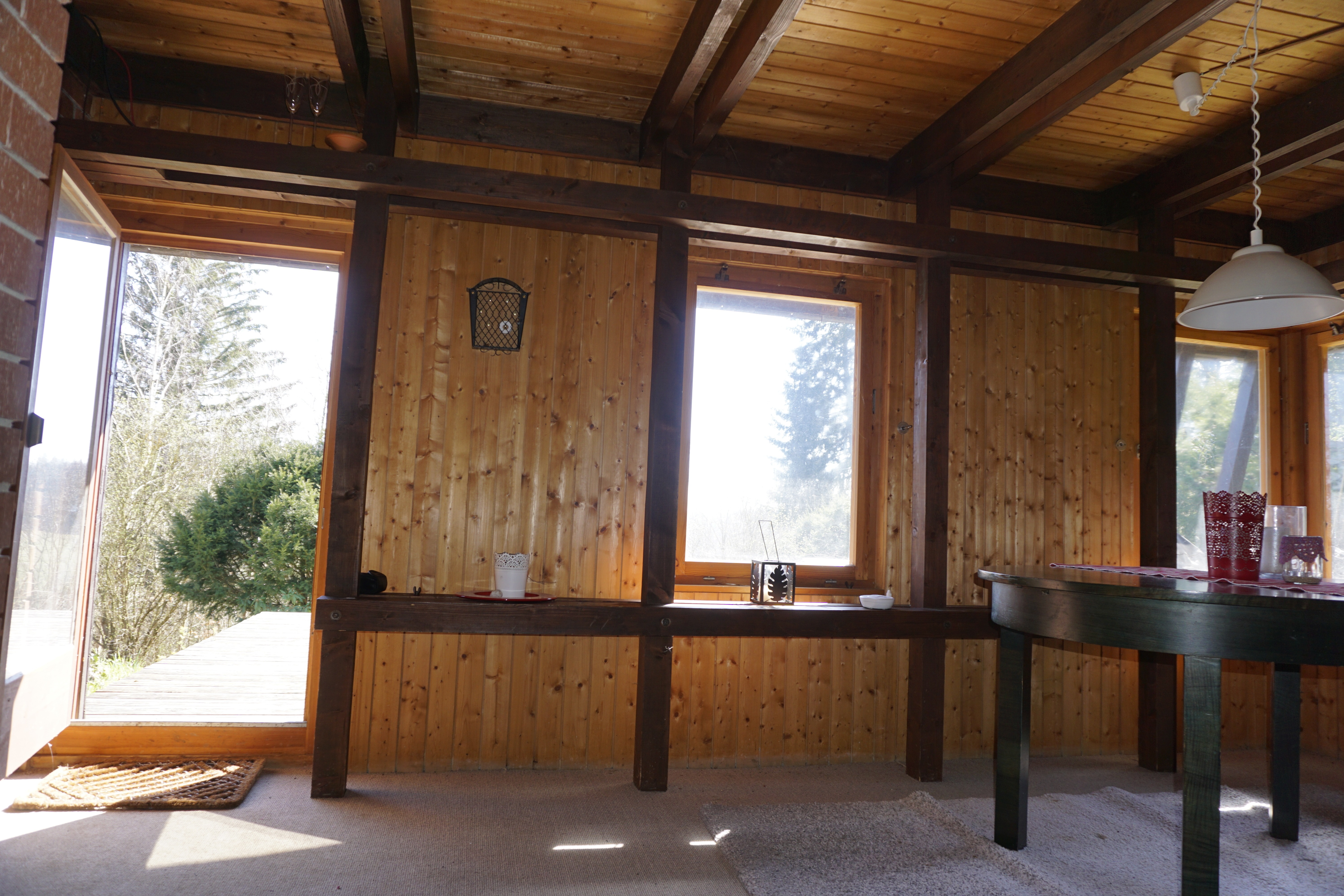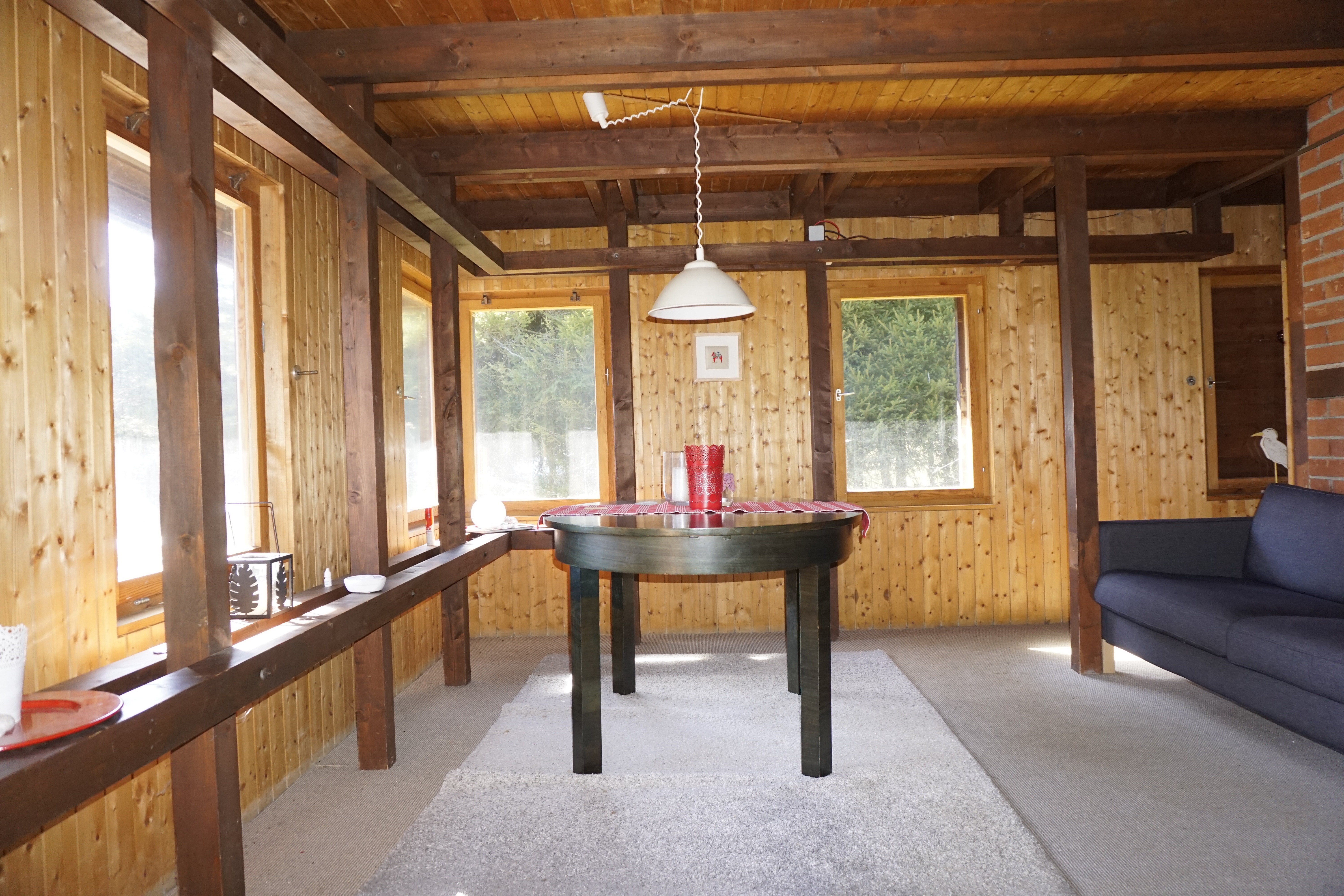 Diese attraktive Ferienimmobilie aus dem Jahr 1968 besticht durch ihr außergewöhnliches Fachwerkhaus mit Pultdach und einer Innenwohnfläche ohne Terrasse von ca. 44 Quadratmetern. Zudem steht Ihnen eine erholsame Terrasse mit ca. 30 Quadratmetern zur Verfügung. Das barrierefreie Gebäude mit zwei kleinen Schlafzimmern mit zwei Stockbetten und einer weiteren, großzügigen und lichtdurchfluteten Wohn-/Essfläche mit Kaminanschluss bietet viel Potenzial für individuelle Gestaltungsmöglichkeiten. Zudem verfügt das Haus über ein geräumiges Kellerabteil und eine gemütliche Terrasse, die zum Verweilen und Entschleunigen im Freien einlädt.