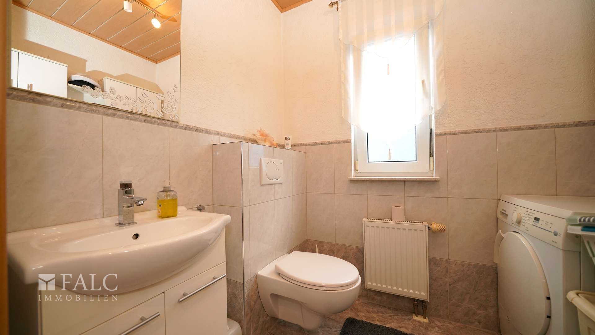 Stressfrei in den Tag starten? Das Badezimmer mit Tageslicht wartet, von Ihnen erobert zu werden. Ausgestattet mit Bad und Dusche, kommt man sich bestimmt nicht mehr in die Quere. Bei einem heißen Bad die Seele baumeln lassen oder lieber unter der bodenebenen Dusche eine Abkühlung genießen? Hier ist für jedermann etwas dabei! Ihre Waschmaschine und der Trockner finden hier oder in der Waschküche des Souterrains eine Heimat.
