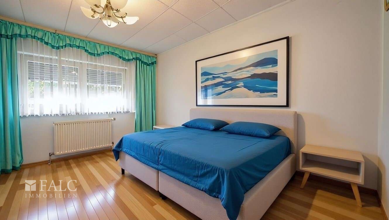 Ein helles Schlafzimmer lässt Sie erholt in den neuen Tag starten, auch hier verfügen Sie über ein Bad mit Tageslicht, einer Wanne, die zu Schaumbädern einlädt und eine Dusche für kühles nass von oben.