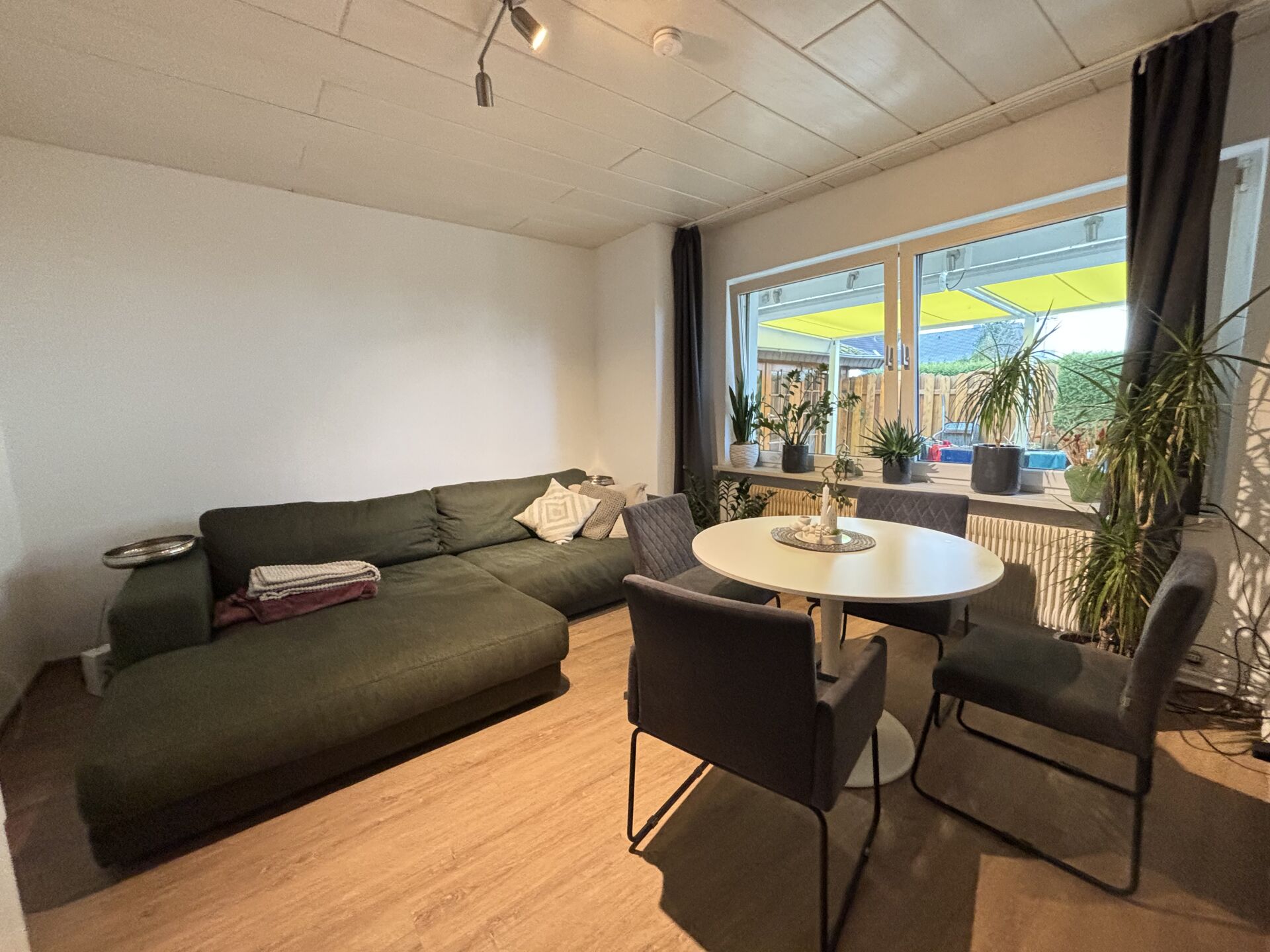 Wohnung: Erdgeschoss ca. 64 m² Kaltmiete: 500,00 € p.M 3 Zimmer, Küche und Bad Kunststoff-Isofenster teilweise von ca. 2000, teilweise Ende 80er Jahre Einbauküche elektrische Rollläden Laminatboden Bad mit bodentiefer Dusche von ca. 2015 Überdachte Terrasse Gartenhaus
