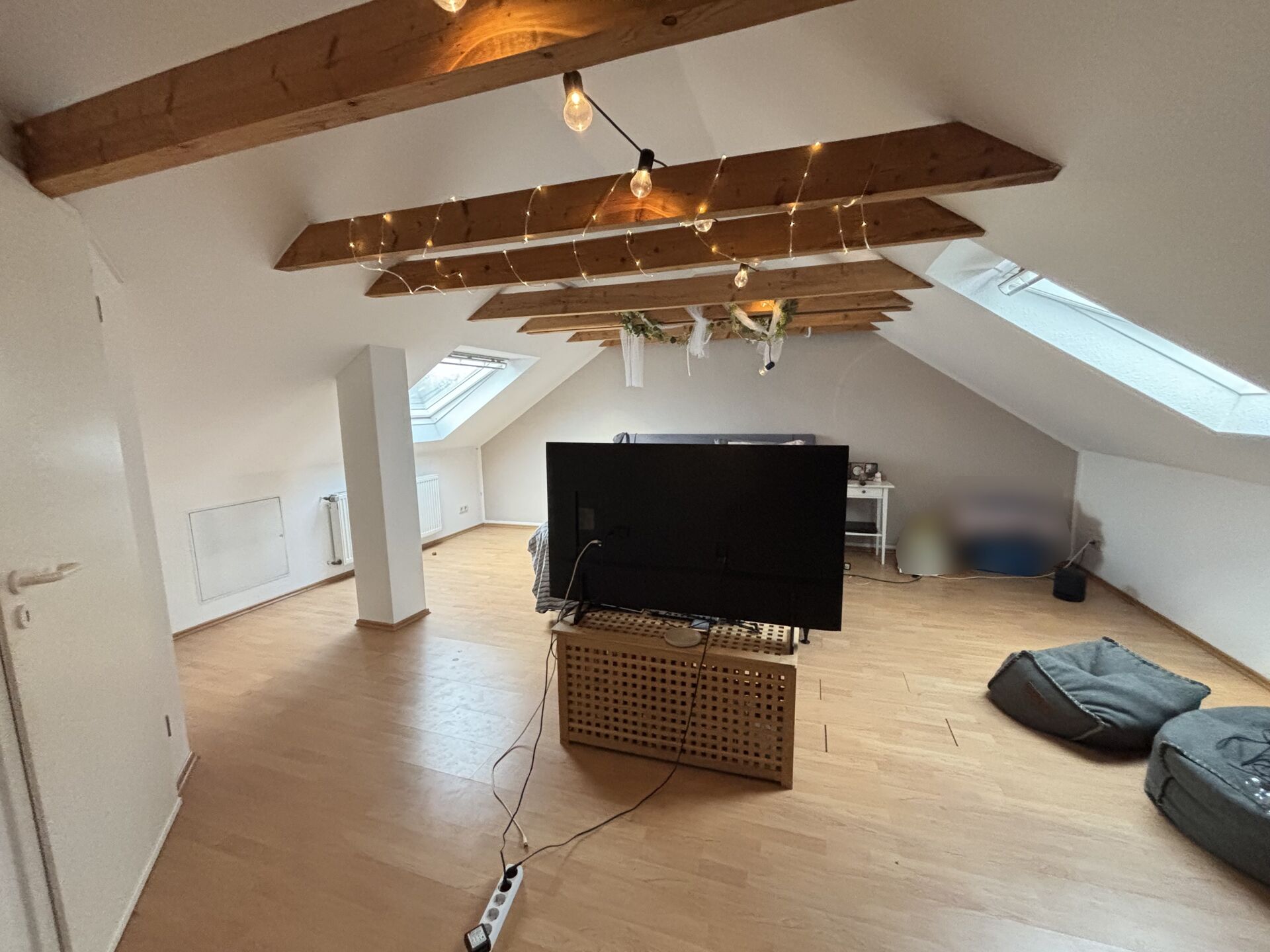 Obergeschoss: Wohnfläche ca 61 qm zzgl. Dachgeschoss ca. 40 m² Nutzfläche inkl. weiterem Bad im DG Wohnung kann auf Wunsch selbst genutzt werden oder mit neuem Mietvertrag an die derzeitigen Mieter weiter vermietet werden Aus- und Umbau in den 90er Jahren, offene Balken Kunststoff-Isofenster 90er Jahre Bad mit Dusche von ca. 2000 Rollläden mechanisch Balkon mit Edelstahlgeländer