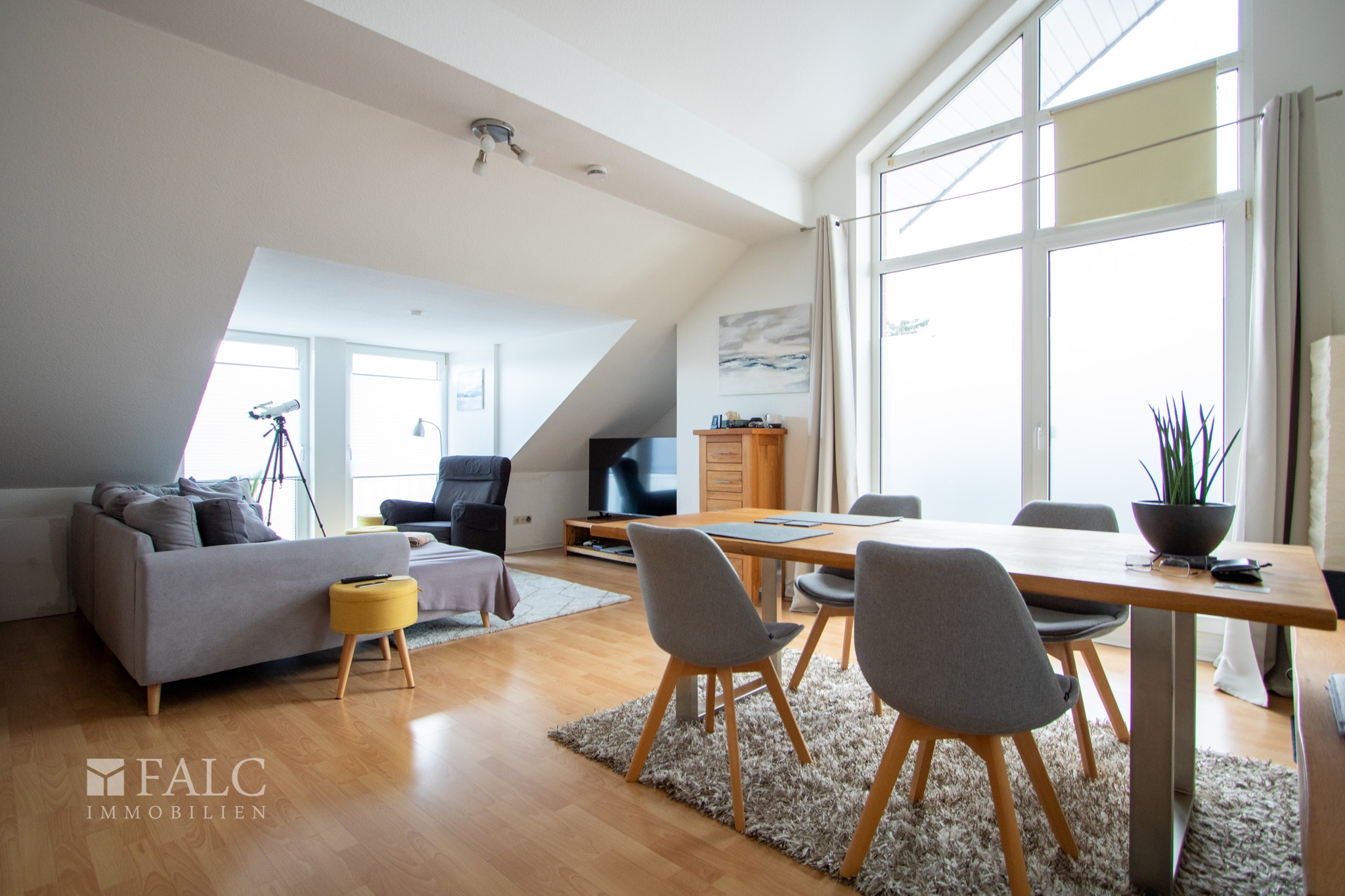 Diese Wohnung befindet sich im Dachgeschoss eines Mehrparteienhauses. Von dem hellen Treppenhaus aus gelangt man in die Eingangsdiele und von dort aus in den großzügigen Wohnraum, die Zimmerdecke ist bis zum Satteldach ausgeführt, mit direktem Zugang auf den Balkon mit Ausrichtung nach Süd/West. Wohn- Arbeits- und Schlafzimmer, das Badezimmer mit Badewanne und Dusche, sowie ein Gäste-WC runden das Wohnangebot ab.