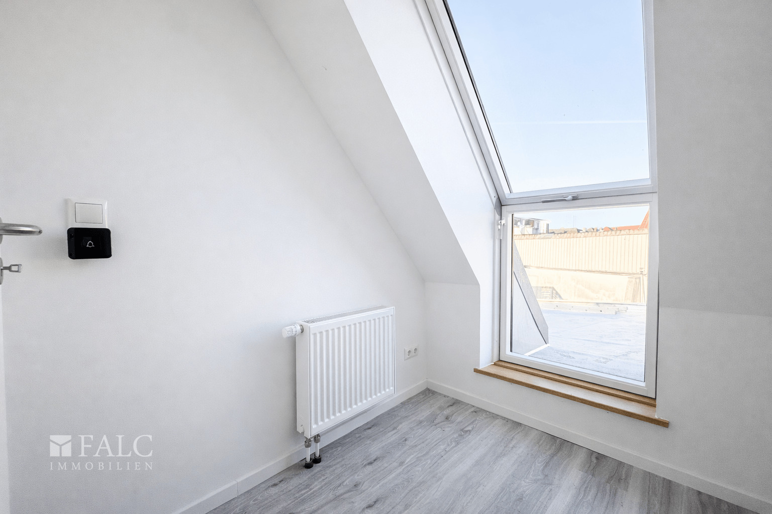 Im Obergeschoss befindet sich das Schlafzimmer mit Dachschrägen und Velux-Dachfenstern. Das Haus verfügt über moderne Kunststofffenster mit Doppelverglasung, Glasfaseranschluss sowie eine im Jahr 2022 erneuerte Gasheizung des Herstellers Wolf. Dach und Dämmung wurden ebenfalls 2022 erneuert. Die Fassade erhält demnächst vom Vermieter einen neuen Anstrich.