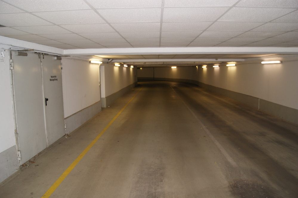 Das Auto kann in der Tiefgarage parken.