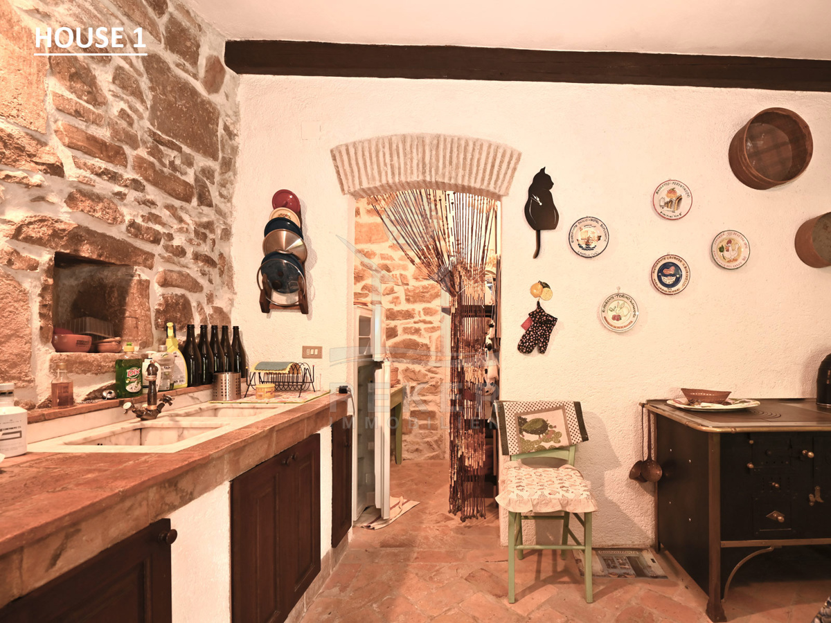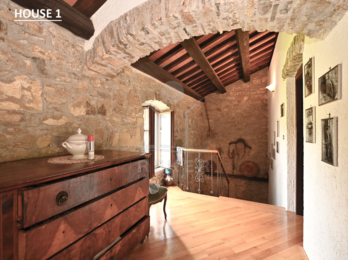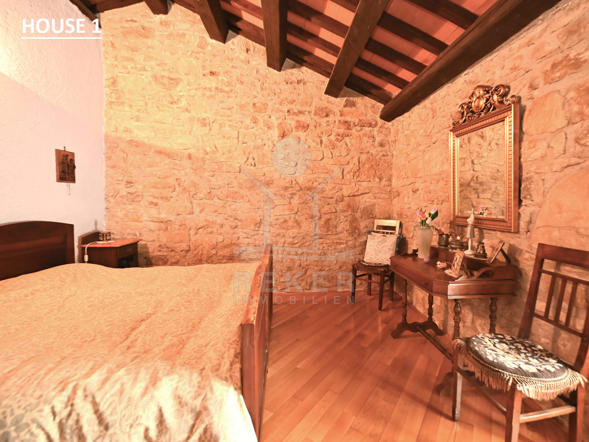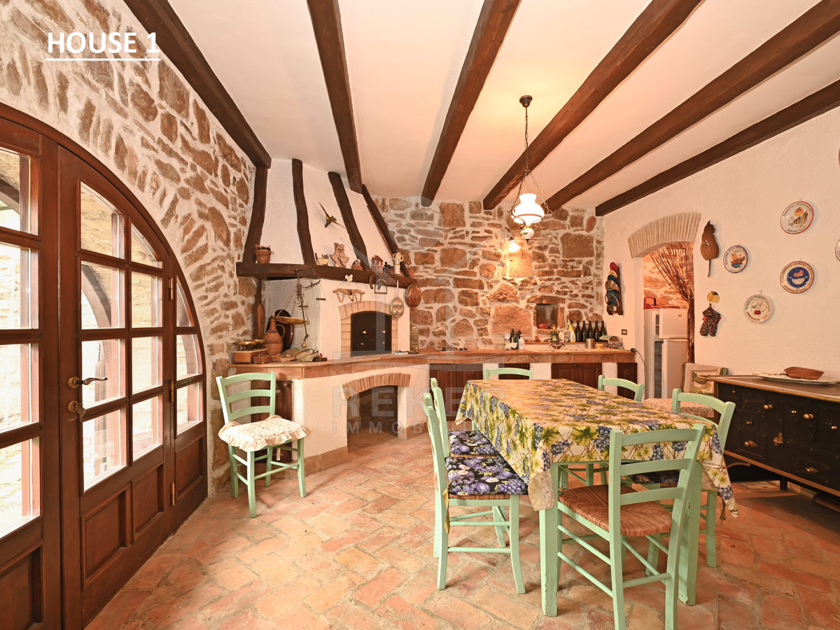 Dieses Anwesen liegt in einem kleinen, abgeschiedenen Weiler in der Nähe von Lupoglav – mitten im Grünen, aber gut angebunden. Zur Küste sind es nur 30 Minuten, zur Autobahn 15. Und genau hier, zwischen Feldern, Wiesen und dem Učka-Massiv, verbirgt sich ein echtes Stück Istrien: Ein Ensemble aus vier Gebäuden mit Geschichte, Charakter und großem Potenzial. Der Fluss Boljunčica fließt in der Nähe – manchmal still, manchmal lebendig. Hier leben Sie mit der Natur, nicht neben ihr.