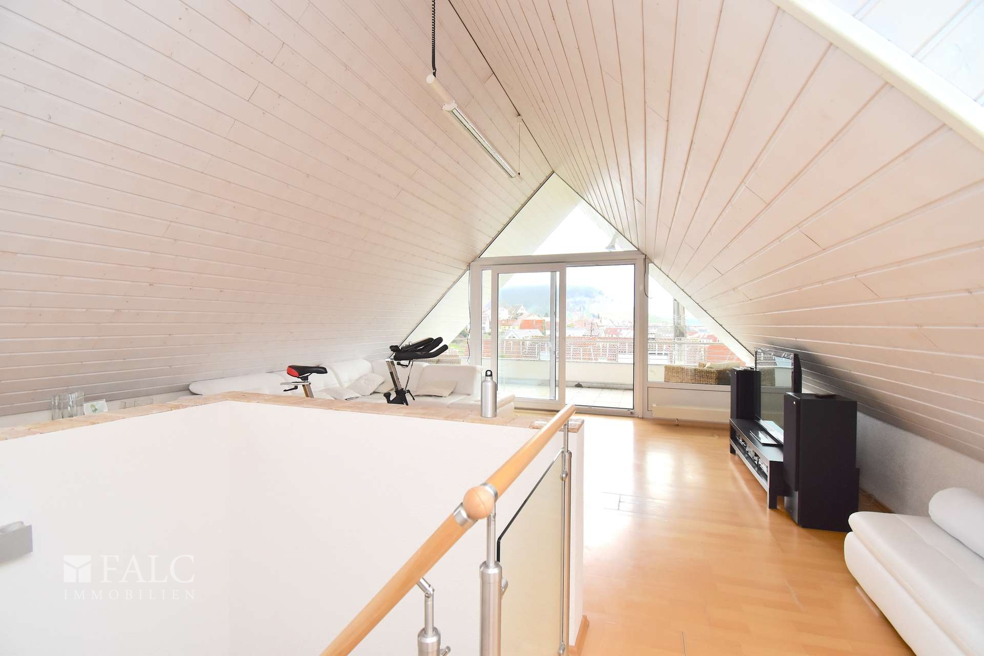 Haus 2 wird momentan vom Eigentümer genutzt. An den großzügigen Wohnbereich mit Kamin im Erdgeschoss, schließt sich die offene offener Küche mit dem großzügigen Essbereich an. Ein Gäste-WC ist im Bereich des Erdgeschosses ebenfalls vorhanden. Im 1 Obergeschoß finden Sie ein großzügiges Bad und 2 Schlafzimmer vor. Vom Balkon des darüber liegenden Dachgeschosses mit komplett ausgebautem Studio, öffnet sich der Blick mit Weitsicht über das schöne Remstal. Genießen Sie hier Ihren Cappuccino oder einen guten Rotwein aus dem Remstal.