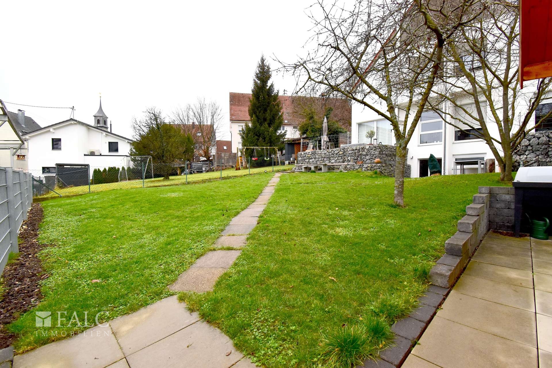 Besonderheiten: -großer gepflegter Garten -das Untergeschoss im Gebäude 2 wurde ausgebaut und „Hobbyraum, Flur und Abstellraum“ wurden in Wohnfläche umgebaut (Wohn-/Schlafzimmer, Flur, mit eigenem Bad und Zugang zum Garten) -Doppelgaragen (Bruttogrundfläche 84 m²) mit automatischen Toren und Satteldach als Lagerfläche -Dachspitz Gebäude 2 wurde als Studio mit Balkon ausgebaut, mit exklusivem Ausblick ins Remstal ausgebaut