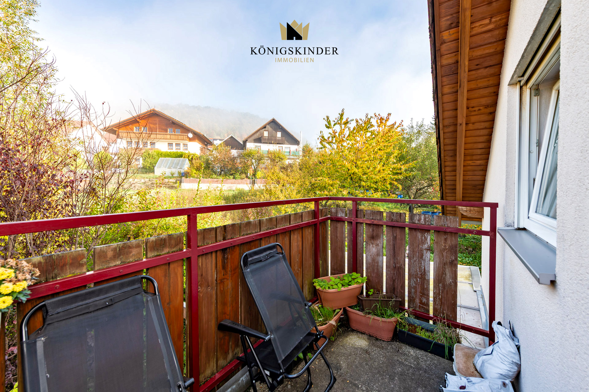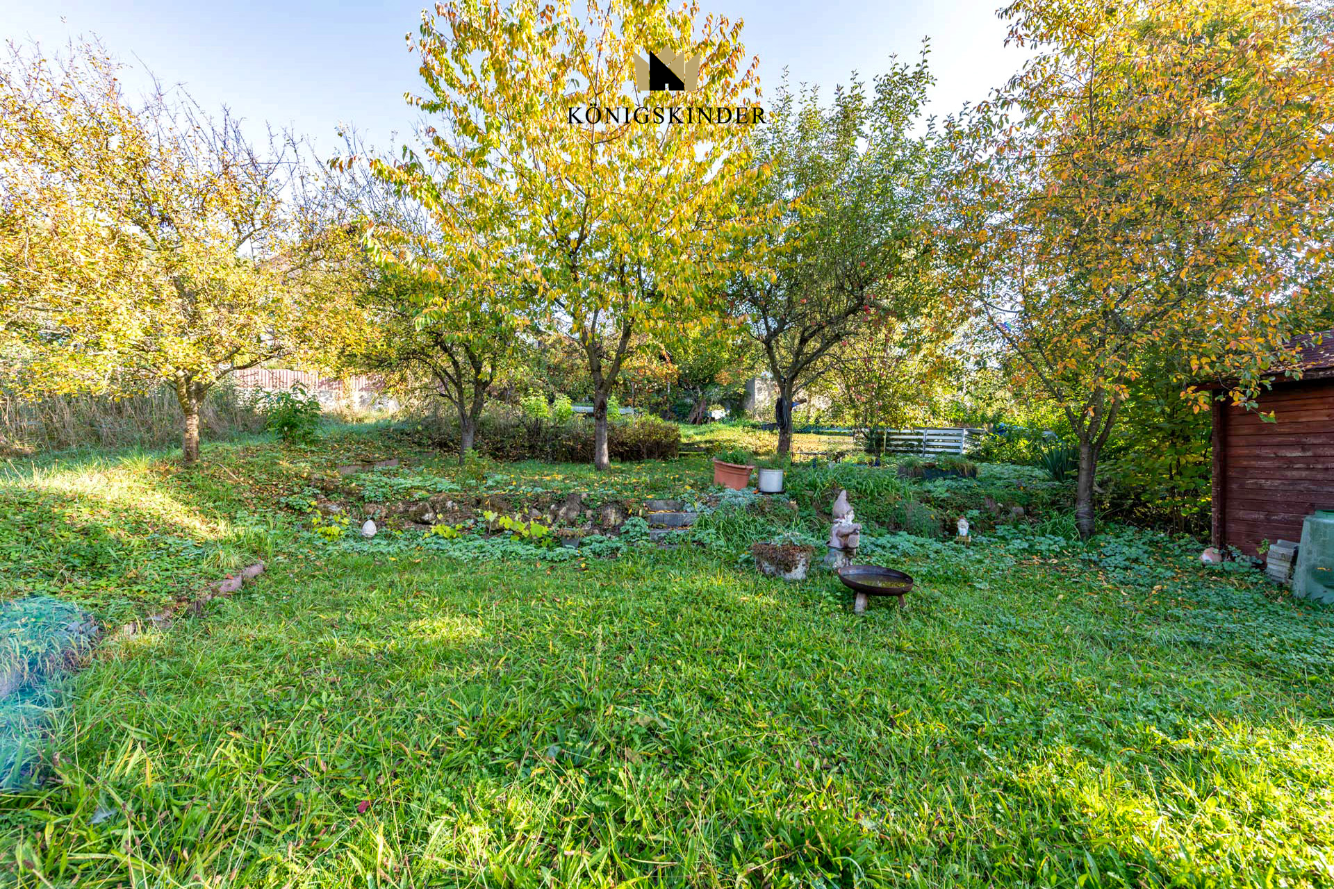 Das Grundstück umfasst ca. 825 m² und bietet neben dem Haus eine große Doppelgarage, mehrere Stellplätze sowie einen gepflegten Garten mit Terrasse und Rasenfläche. Durch die Hanglage genießt man auf der oberen Wohnebene und vom Balkon aus eine unverbaubare Aussicht auf die umliegende Landschaft.