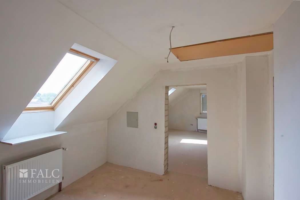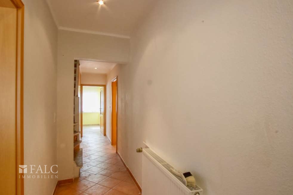 Vom Flur aus gelangen Sie über eine Treppe in den Keller sowie ins Obergeschoss. Im Anbau erschließt sich ein kleiner, heller Flur, der zwei vorbereitete Räume verbindet – ideal für Ihre persönliche Wand- und Bodengestaltung ohne aufwendige Sanierung. Der Altbau bietet zusätzlich zwei weitere Zimmer sowie ein zweites, ebenso gefliestes Badezimmer, in welchem Sie noch die Sanitärobjekte Ihrer Wahl installieren können. Im zweiten Obergeschoss finden Sie den Raum für die Heiztechnik und weitere Abstellmöglichkeiten. Alle Fenster im Anbau sind mit Außenrollläden versehen.