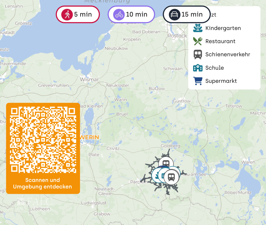 Lübz liegt idyllisch inmitten der Mecklenburgischen Seenplatte. Die Kleinstadt besticht durch ihre ruhige, grüne Umgebung und gleichzeitig kurze Wege zu allen wichtigen Einrichtungen des täglichen Bedarfs. Dank der Nähe zur Autobahn A24 erreichen Sie Hamburg und Berlin in etwa einer Stunde. Dank der zentralen Lage sind Einkaufsmöglichkeiten sowie Cafés und Restaurants bequem zu Fuß erreichbar. Auch Schulen und Kindergärten finden Sie in Lübz vor.
