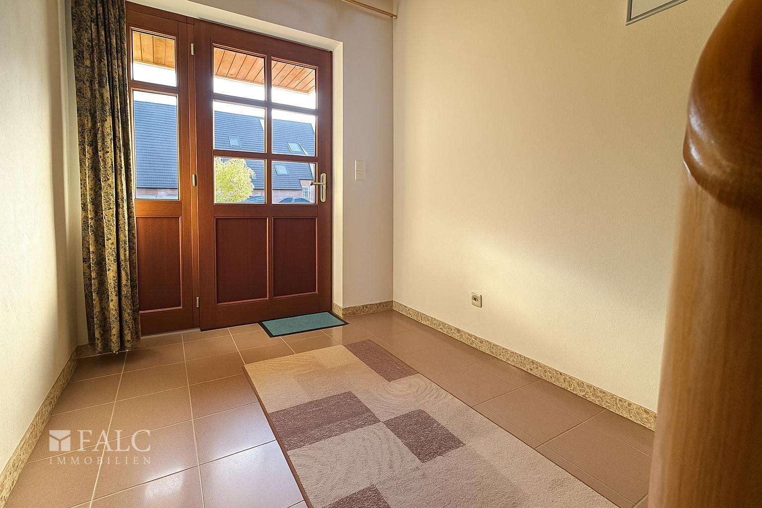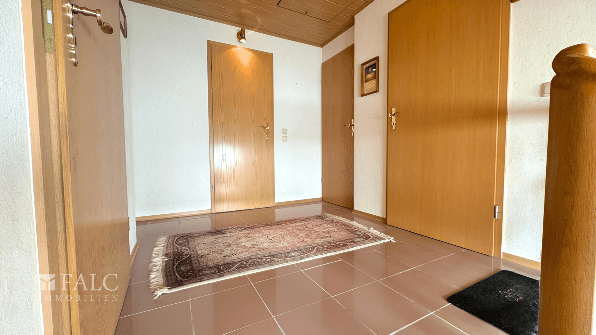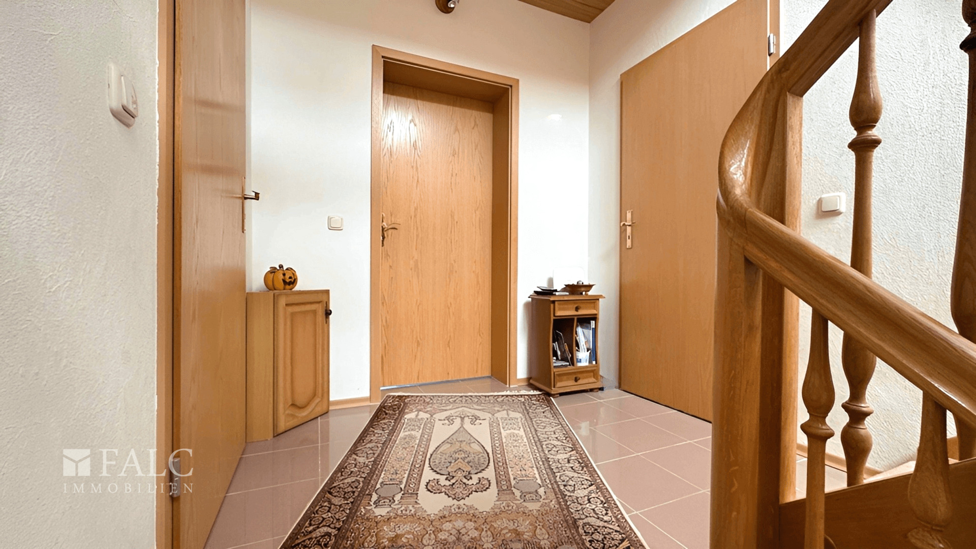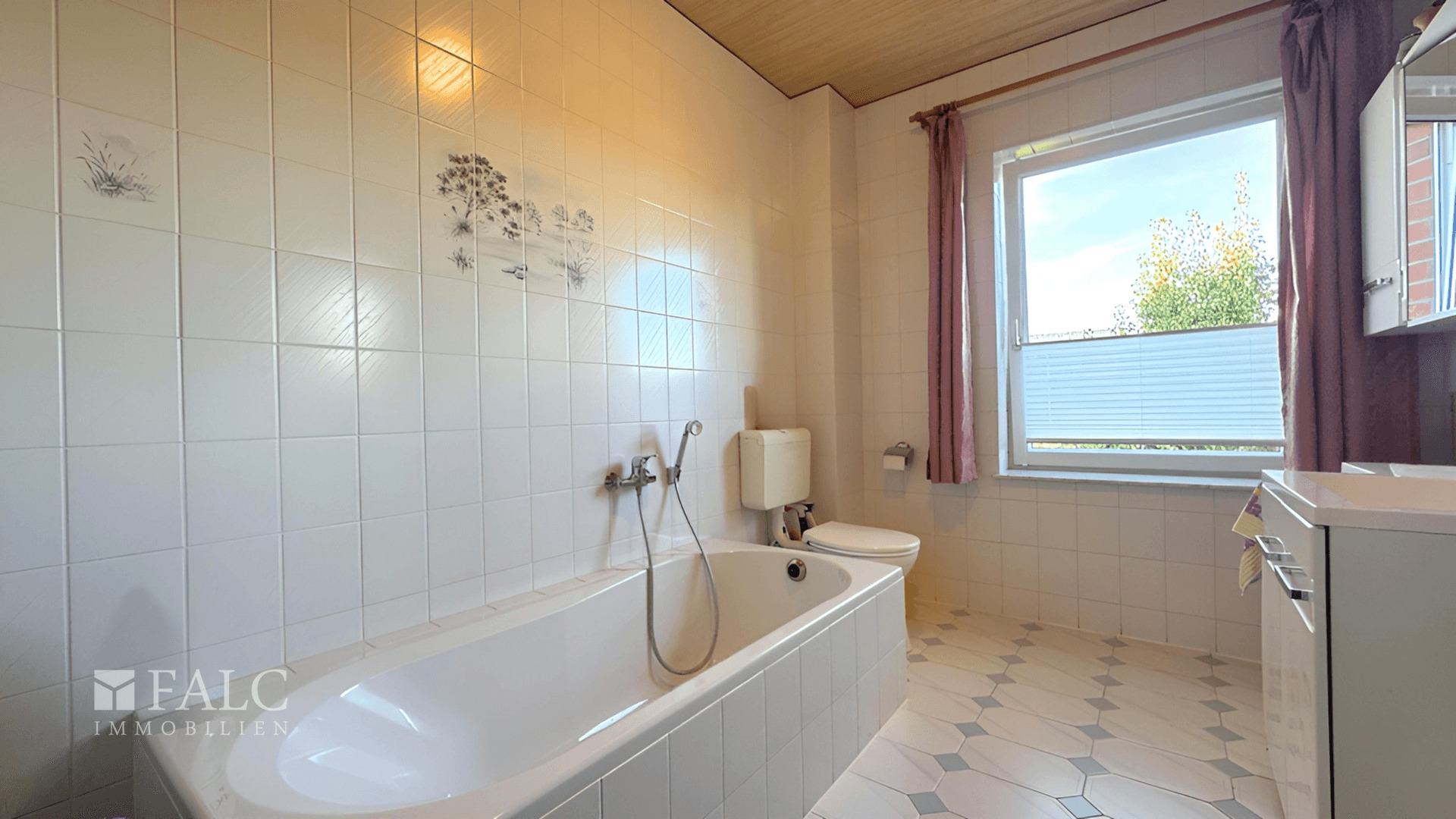 Bereits beim Betreten des Hauses spürt man die gepflegte Atmosphäre und den soliden Charakter der Immobilie. Im Erdgeschoss befindet sich der einladende Wohnbereich, der durch große Fensterflächen und Außenrollos angenehm hell und zugleich gut beschattet ist. Die Fußbodenheizung sorgt hier für ein wohliges Raumklima. Der Boden ist teils mit hochwertigen Fliesen, teils mit Parkett oder Teppich ausgelegt, was den Räumen eine warme und wohnliche Note verleiht. Das Badezimmer auf dieser Ebene ist mit einer Badewanne ausgestattet und bietet genügend Platz für die ganze Familie.