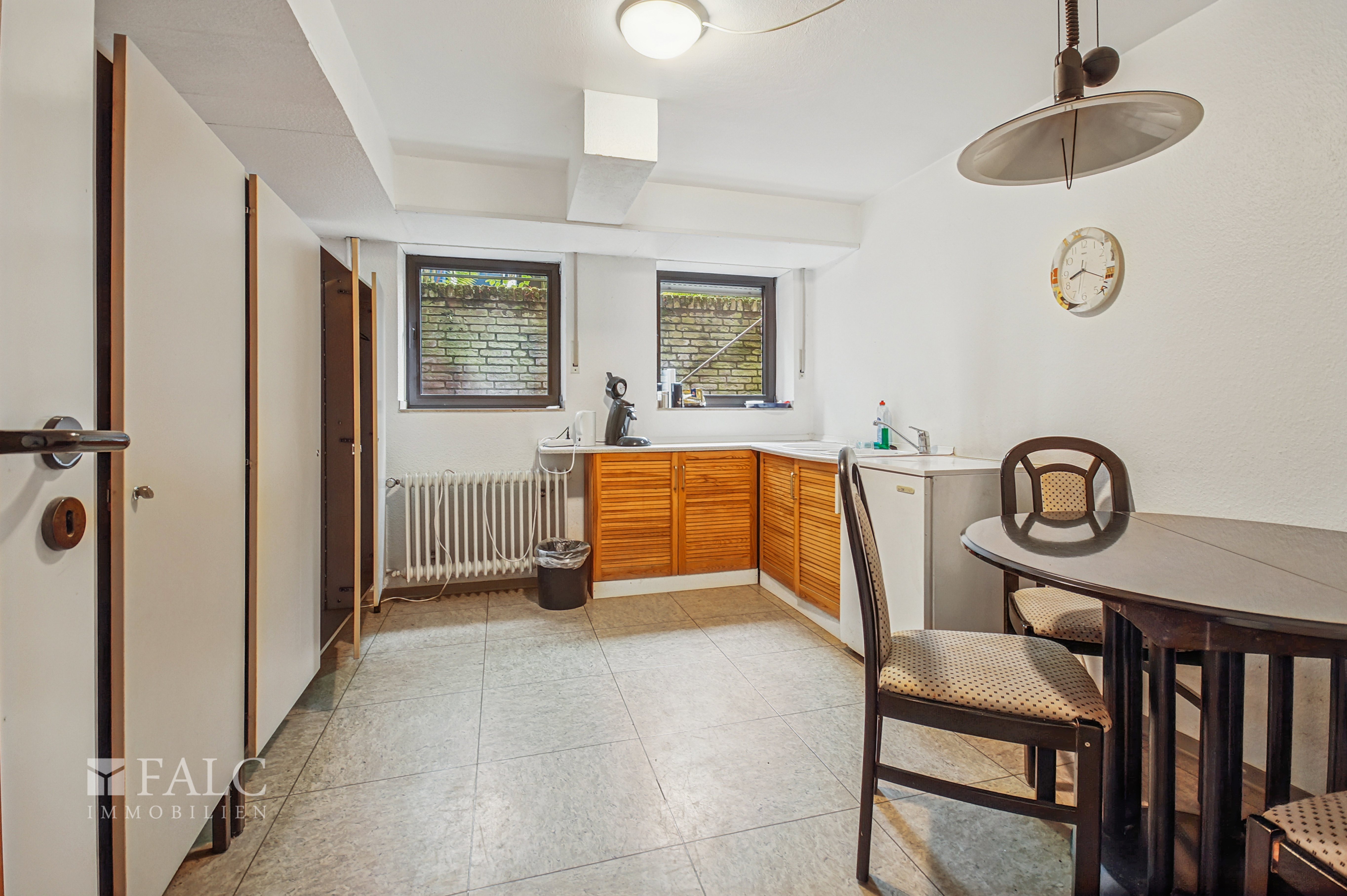 Das Souterrain bietet weitere praktische Flächen: Neben einem gemütlichen Pausenraum und einer potenziellen Labor- oder Arbeitsfläche stehen hier auch zusätzliche Abstellmöglichkeiten zur Verfügung.
