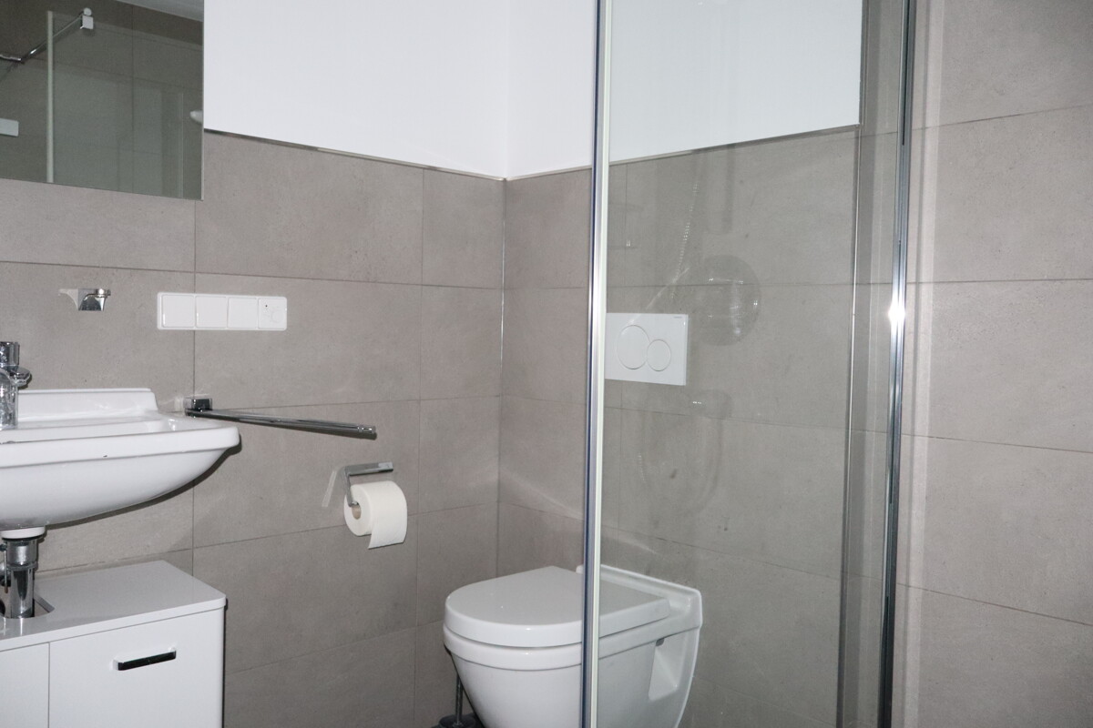 Beide Bäder haben eine Glasdusche, Handtuchheizkörper