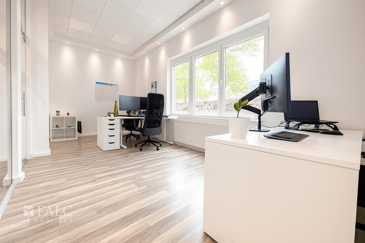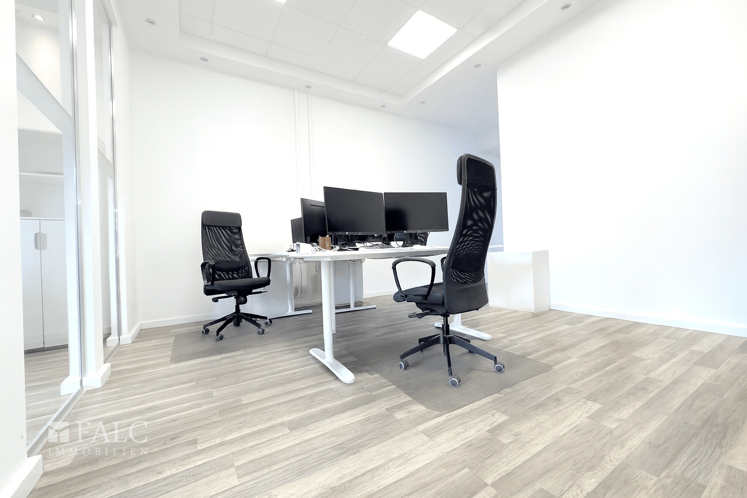 Die Büroräume sind mit einer leistungsstarken Klimatisierung ausgestattet, sodass auch an heißen Sommertagen ein angenehmes Raumklima für konzentriertes Arbeiten gewährleistet ist. Eine durchgehende LAN-Verkabelung sorgt für eine stabile und schnelle Datenverbindung und stellt damit eine verlässliche Grundlage für moderne Arbeitsprozesse dar. Ergänzend stehen Starkstromanschlüsse zur Verfügung, die den Betrieb leistungsintensiver Geräte problemlos ermöglichen und Flexibilität in der Nutzung sicherstellen.