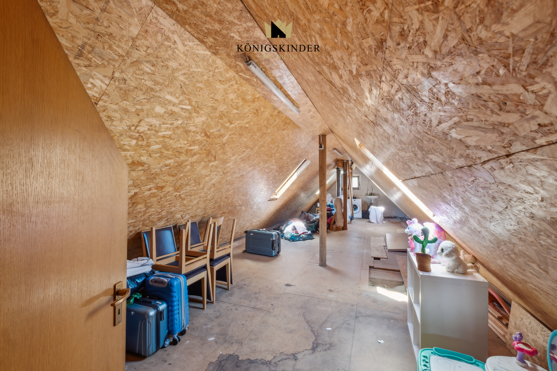 Ein besonderes Highlight stellt der weitläufige Dachboden dar, der sich über das gesamte Gebäude erstreckt und erhebliches Ausbaupotenzial bietet, etwa für eine weitere Wohneinheit, ein Studio oder zusätzlichen Stauraum. Die Gewerbeeinheit im Erdgeschoss mit ca. 112 m² Nutzfläche eröffnet vielseitige Nutzungsmöglichkeiten, beispielsweise als Büro, Praxis oder Dienstleistungsfläche. Ergänzend sorgt eine auf dem Dach installierte, gewerblich genutzte Antenne für regelmäßige monatliche Zusatzeinnahmen.
