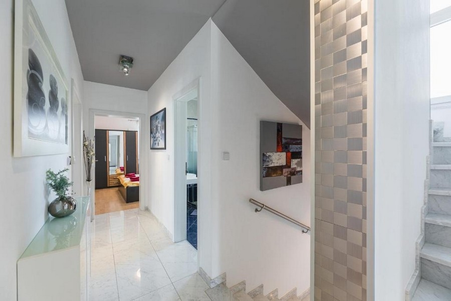 Im Obergeschoss gibt es drei weitere Schlafräume und zwei Badezimmer. Jedes Zimmer hat Zugang zur Terrasse mit wunderschönem Ausblick auf das Meer.