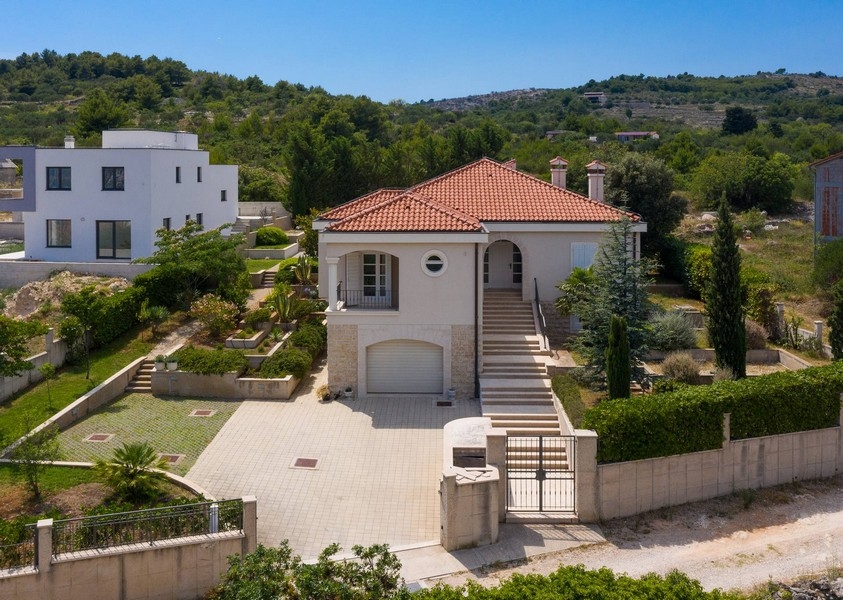 Bei diesem Angebot handelt es sich um eine stilvolle Villa in ruhiger Umgebung mit Meerblick etwas oberhalb von Vodice, Dalmatien.