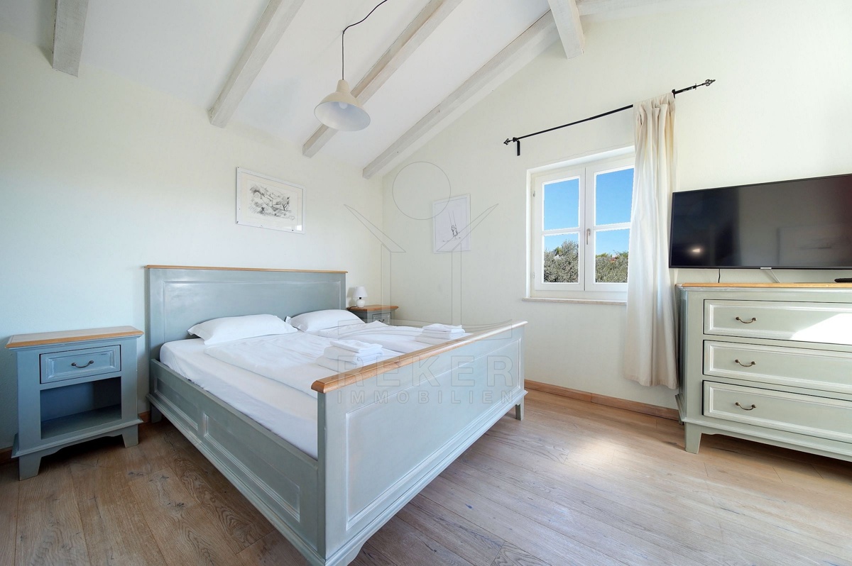 Vier Schlafzimmer mit jeweils eigenem Bad sorgen für Privatsphäre im Alltag oder bei Gästen. Fußbodenheizung, Wärmepumpe, Solarkollektoren und Klimaanlage garantieren angenehmes Wohnen zu jeder Jahreszeit. Dazu eine Sauna im Erdgeschoss … Entspannung beginnt direkt zu Hause.