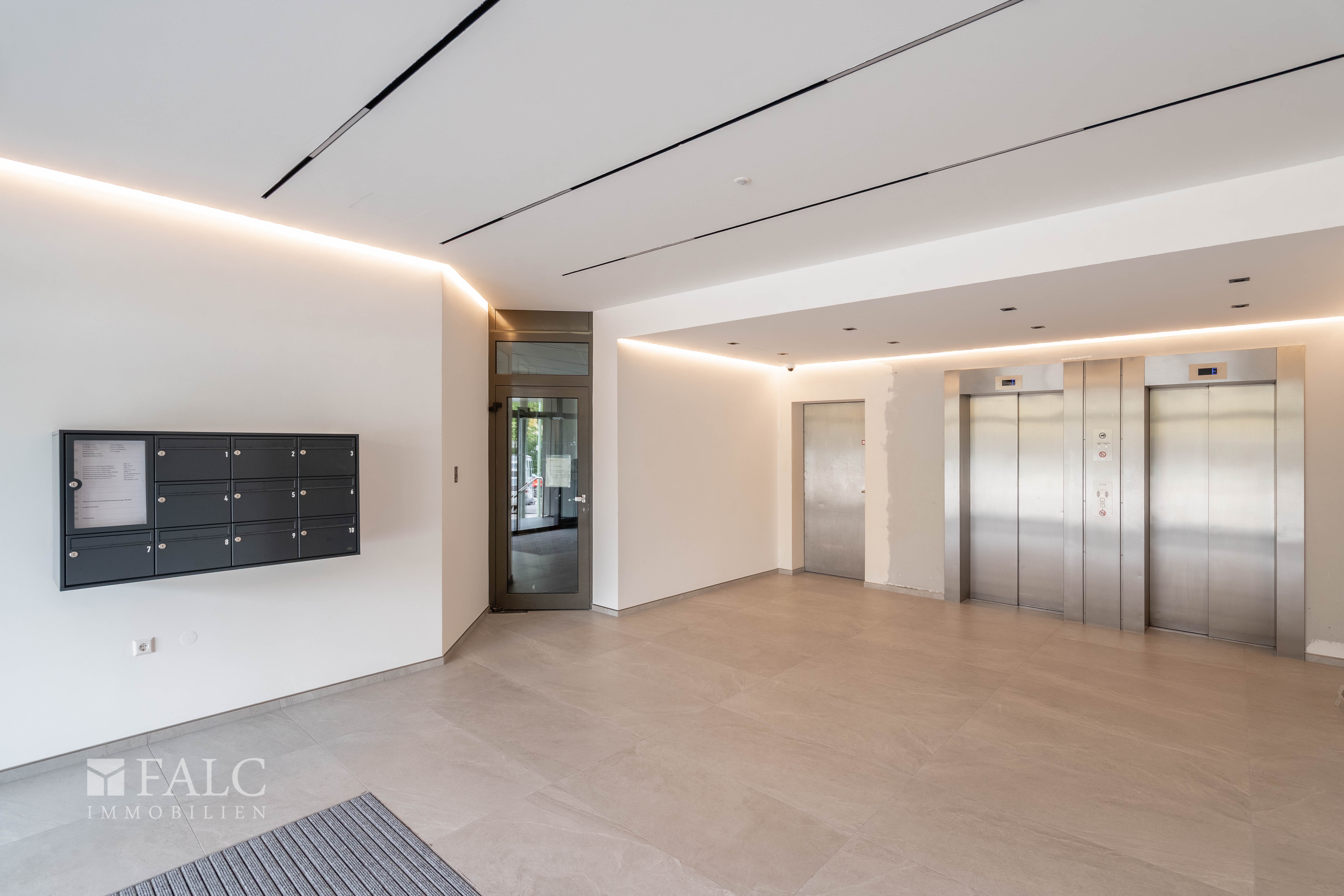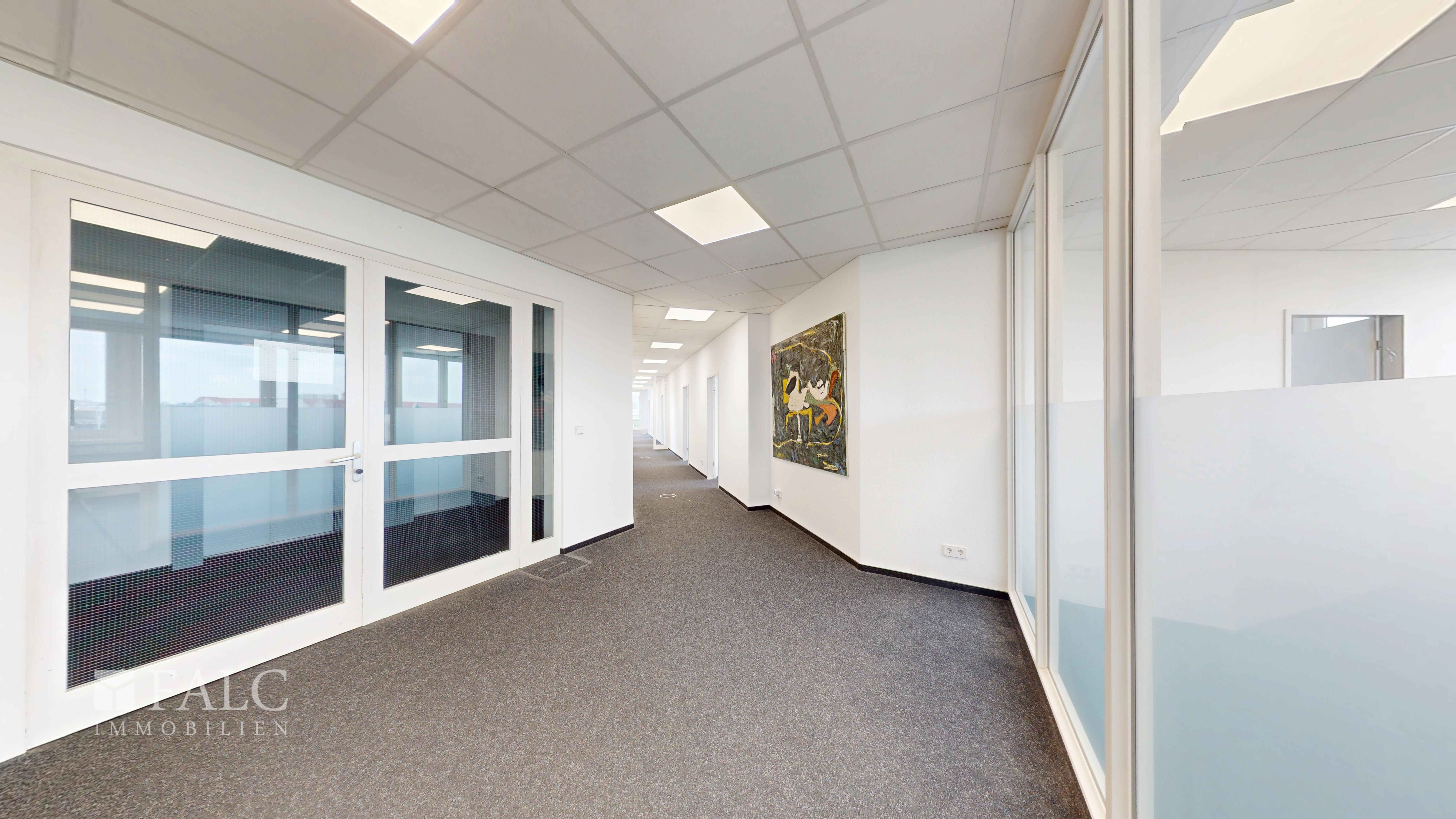 Beim Betreten dieses großzügigen Bürogebäudes aus dem Jahr 1987 gelangen Sie zunächst in einen einladenden Eingangsbereich, der mit einer modernen Liftanlage ausgestattet ist. Über den Aufzug gelangen Sie in die 5. und höchste Etage im Gebäude. Der großzügige Empfangsbereich führt Sie zu den insgesamt zehn Büroräumen zuzüglich Küche und Serverraum.