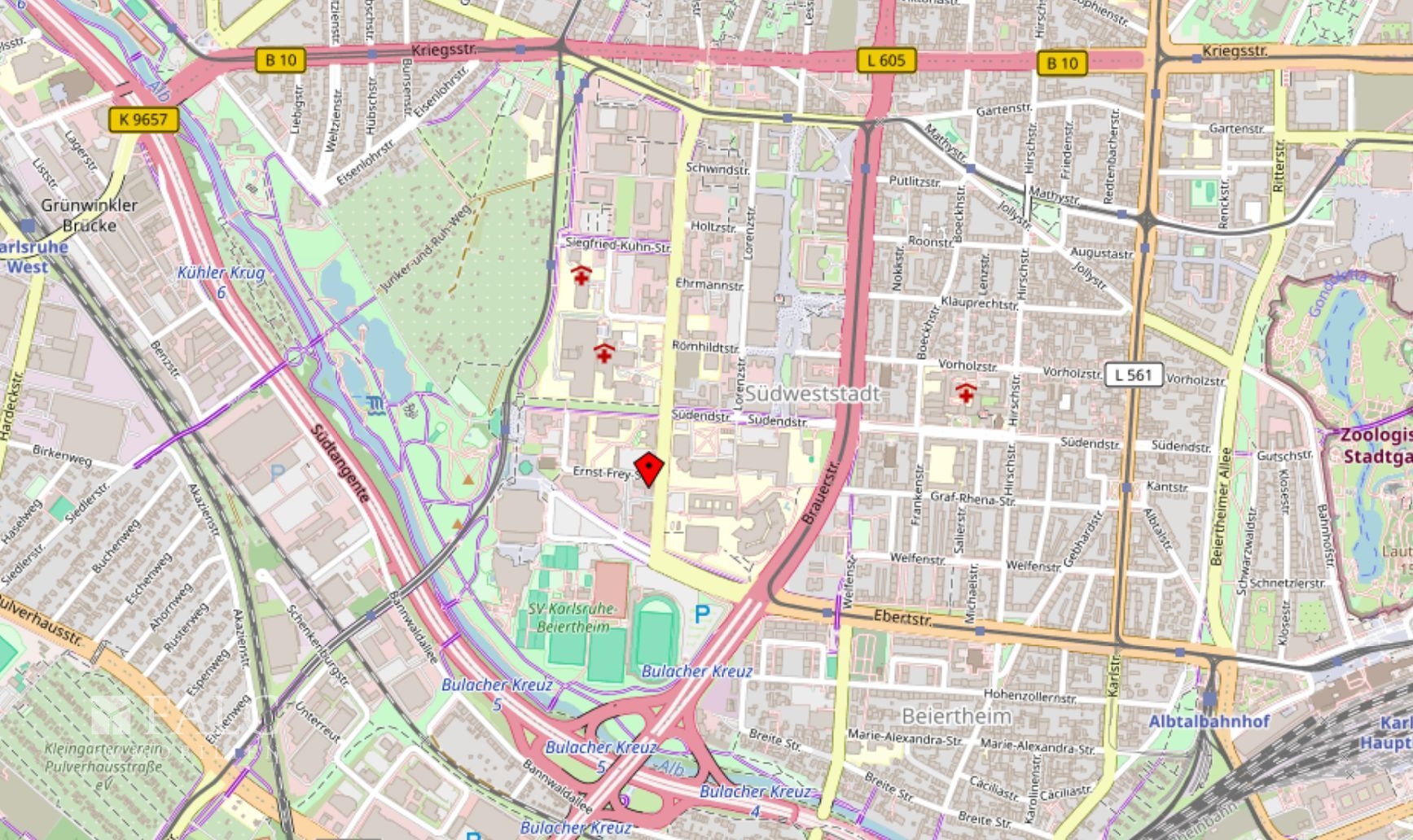 Die Immobilie befindet sich in einer strategisch günstigen Lage in der Karlsruher Süd-Weststadt direkt neben dem ADAC-Gebäude, die sich hervorragend für geschäftliche Aktivitäten eignet. Die Umgebung bietet eine Vielzahl von Annehmlichkeiten, die den Arbeitsalltag erleichtern und bereichern.