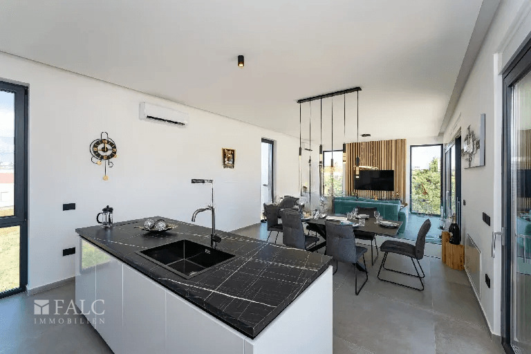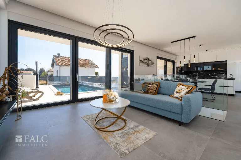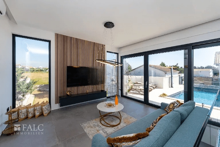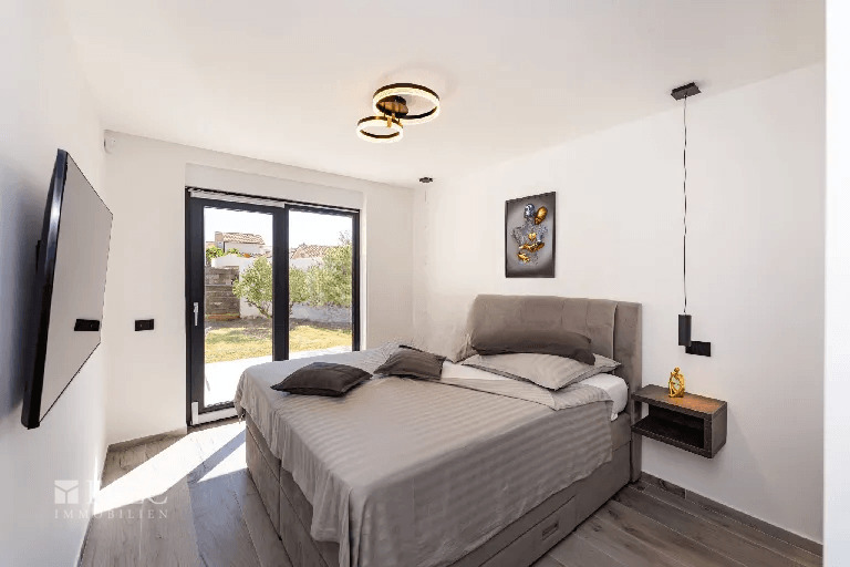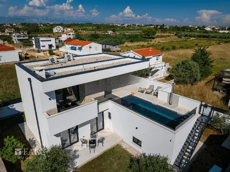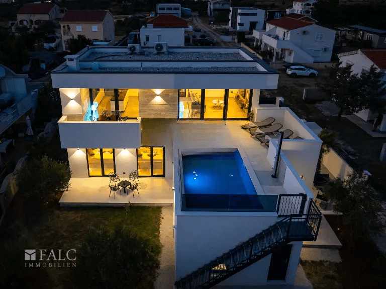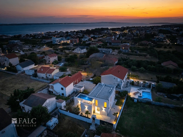 Diese luxuriöse, vollständig möblierte Villa mit Pool und gepflegtem Garten vereint modernes Design mit höchstem Wohnkomfort und liegt in der ruhigen Ortschaft Vrsi, nur rund 20 Kilometer von Zadar und unweit der historischen Stadt Nin entfernt. Eingebettet in eine angenehme, private Umgebung bietet sie ideale Voraussetzungen für entspanntes Wohnen oder exklusive Urlaubstage an der Adriaküste.