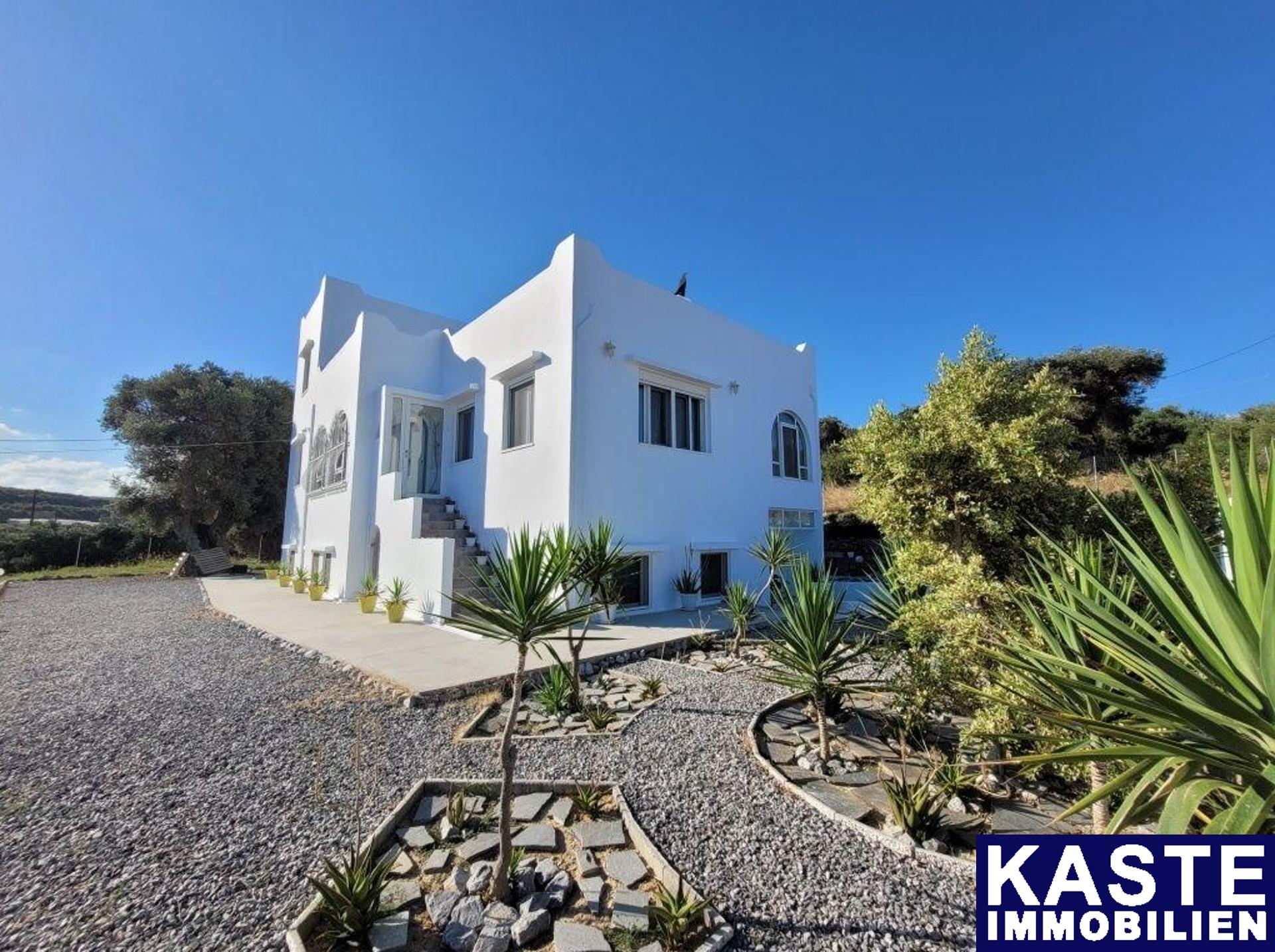 Kürzlich renoviertes freistehendes Haus von 327 m² in Sfakaki, Rethymno. Es befindet sich auf einem 1500 m² großen Grundstück mit einer verbleibenden Baufläche von 200 m², 500 m vom Meer entfernt, an einer Gemeindestraße und in der Nähe der Nationalstraße Rethymnon - Heraklion. Das Haus wurde vor kurzem renoviert, wobei die Möglichkeit besteht, einen Swimmingpool zu bauen und andere Werte zu verwerten. Das Haus besteht aus 2 Etagen: Im Erdgeschoss gibt es einen einzigen Raum Wohnzimmer-Esszimmer-Wohnzimmer, eine separate Küche, 2 Schlafzimmer, ein Badezimmer mit Loft und eine geschlossene Veranda mit Fenstern. In der ersten Etage befinden sich 2 Schlafzimmer, 1 Badezimmer mit Loft und eine 100 qm große Terrasse mit freiem Blick auf das Meer. Das Haus verfügt außerdem über ein Halbuntergeschoss, in dem sich ein Büro, ein Spielzimmer, eine Waschküche, ein Badezimmer mit zwei Räumen, ein großer Abstellkeller und eine geschlossene Garage befinden. Schließlich verfügt das Haus über 2 Abstellräume unter der Außentreppe, Aluminiumrahmen, Doppelverglasung, Fliegengitter, Solar-Wassererhitzer und Druckwassertank (für den Fall einer Wasserunterbrechung). Das Anwesen befindet sich in einer privilegierten Lage, mit einfachem Zugang zu einem organisierten Strand und Bushaltestellen, während die Gegend, in der es sich befindet, Restaurants, Apotheken, Supermärkte, Tankstellen, Bäckereien, Konditoreien und Cafés bietet.