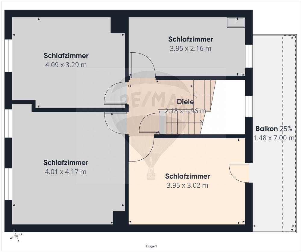 Das Obergeschoss bietet insgesamt vier Schlafzimmer, die vielseitig genutzt werden können. Diese Räume bieten ausreichend Platz für Kinderzimmer, Gästezimmer oder Home Office. Alle Zimmer sind hell und geräumig und bieten zahlreiche Gestaltungsmöglichkeiten. Vom Obergeschoss aus erreichen Sie zudem den Balkon, der einen schönen Ausblick auf die Umgebung bietet – der ideale Ort, um den Tag bei einem Kaffee zu beginnen oder den Abend ausklingen zu lassen. Zusätzlich gelangen Sie über eine Treppe in den Dachboden, der weiteres Potenzial für Stauraum bietet.
