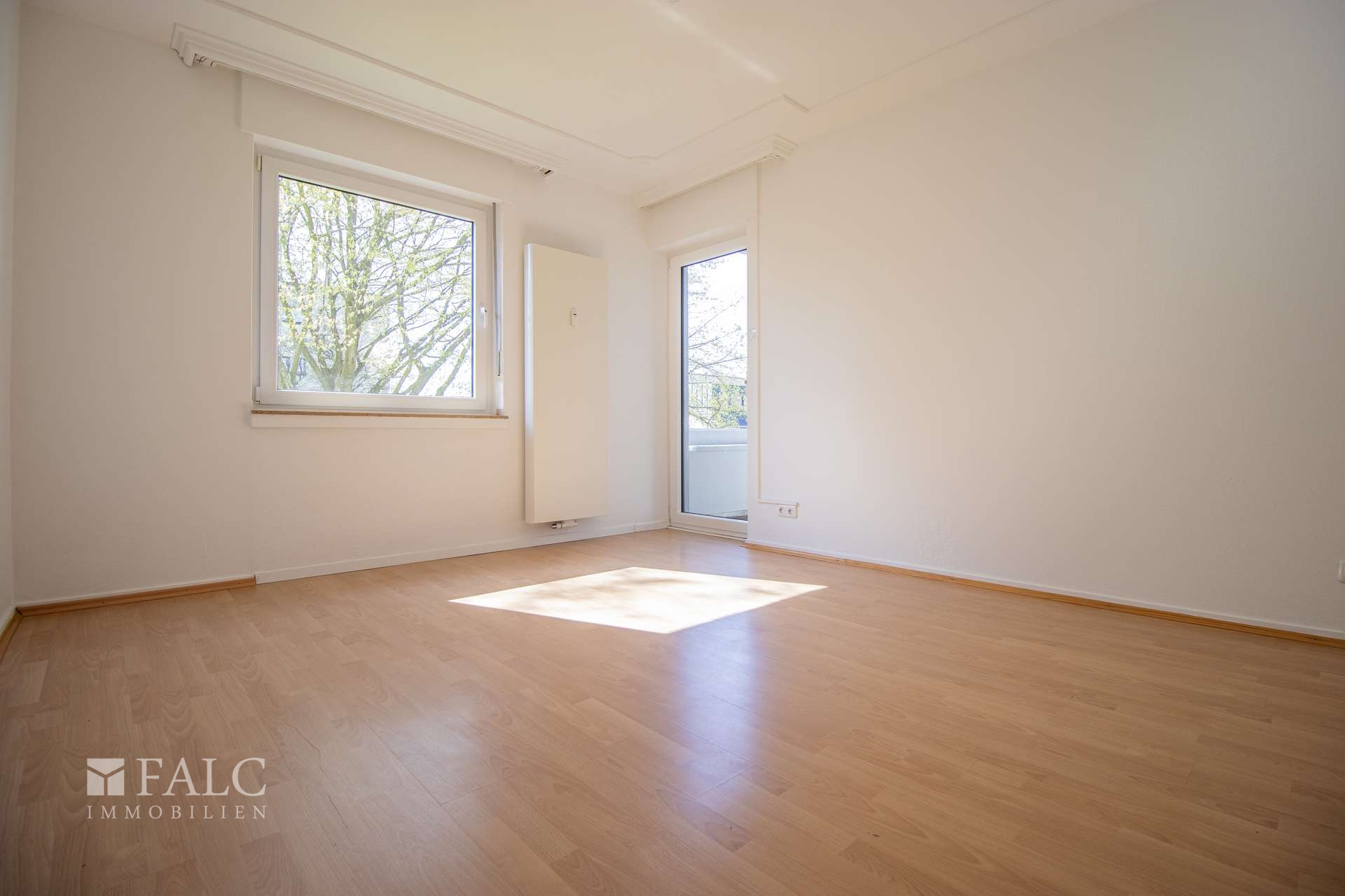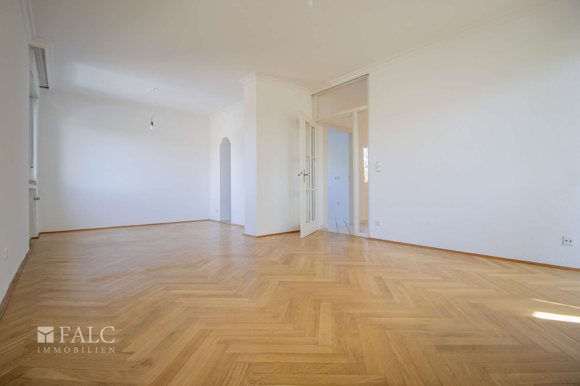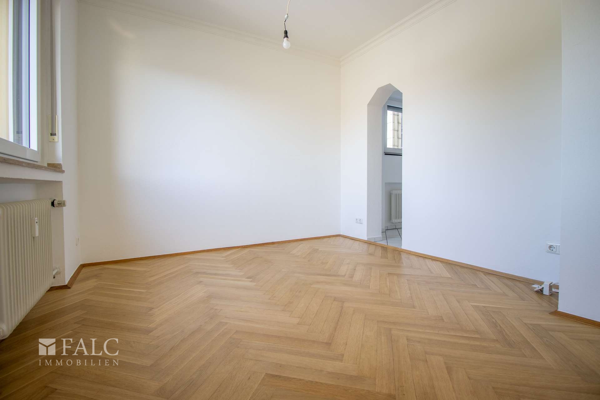 Für den Wohnbereich wurde mit hochwertigem Echtholzparkett gearbeitet. Ihre weiteren beiden Zimmer sind mit langlebigem und pflegeleichtem Laminatboden ausgestattet. Die Küche sowie der Flurbereich sind zeitlos in weiß gefliest.