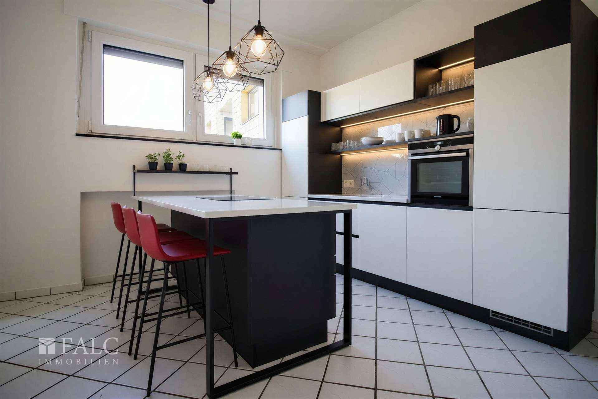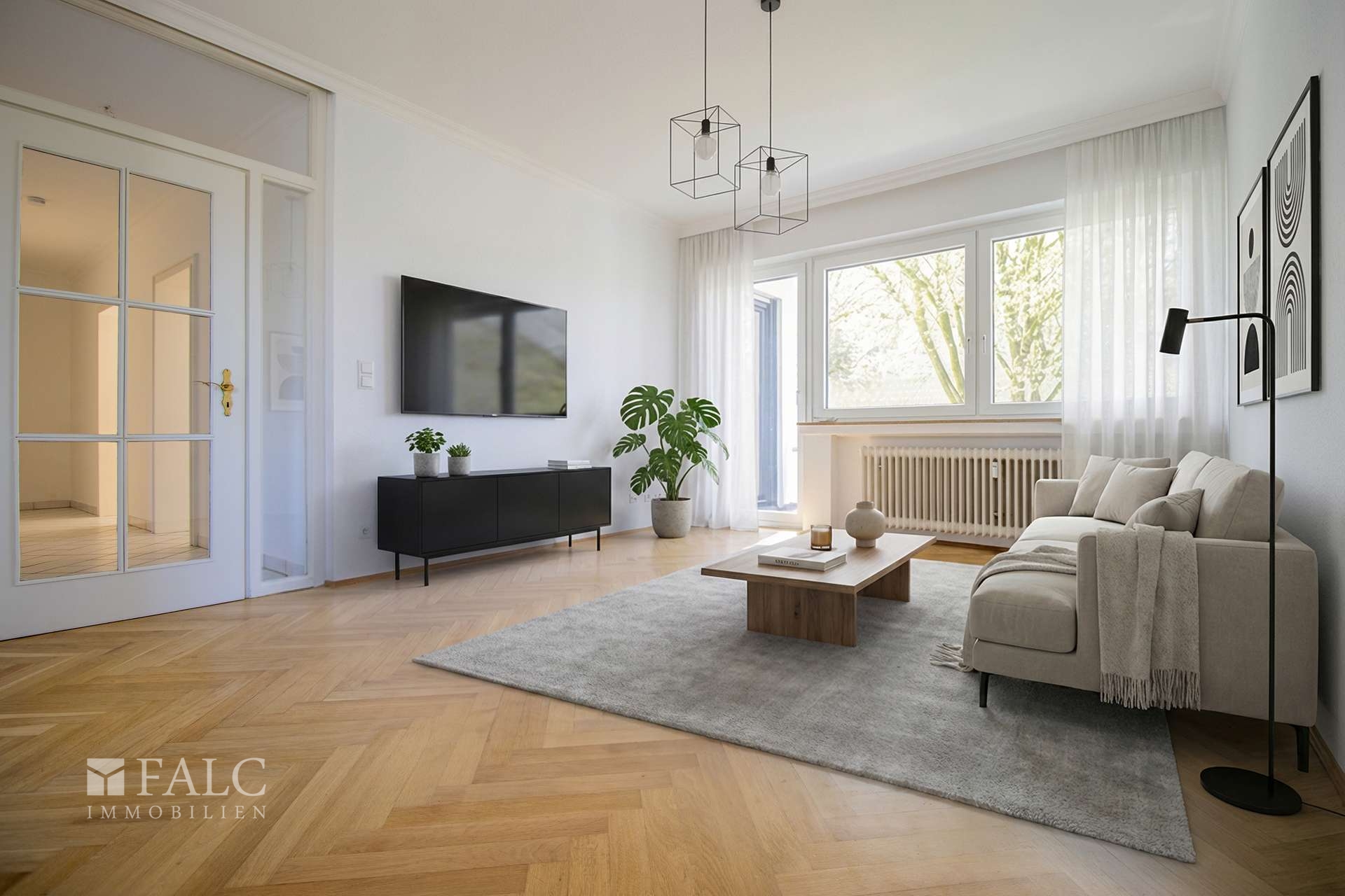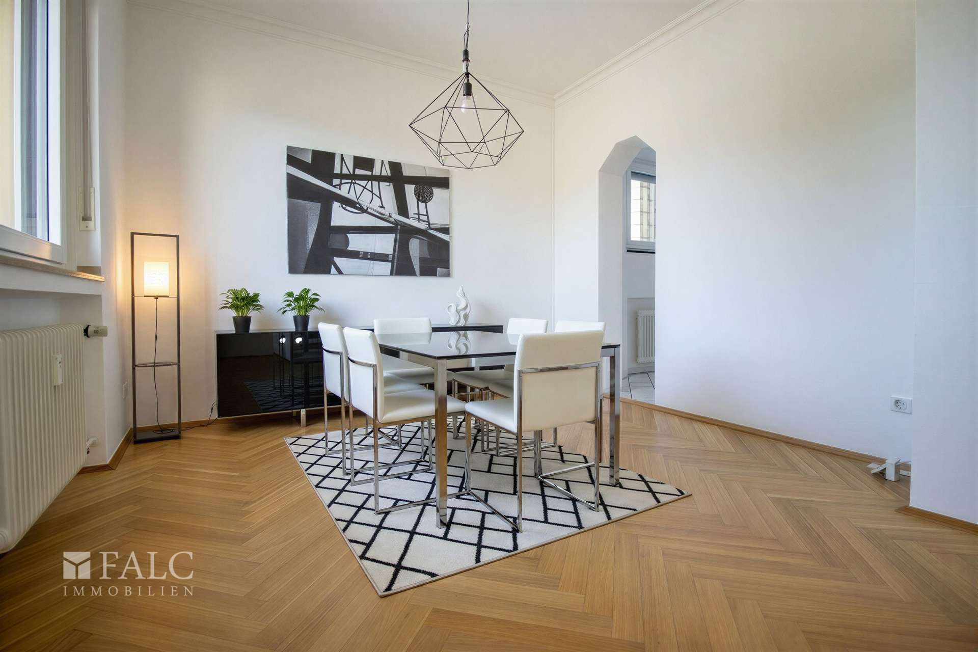 Für den Wohnbereich wurde mit hochwertigem Echtholzparkett gearbeitet. Ihre weiteren beiden Zimmer sind mit langlebigem und pflegeleichtem Laminatboden ausgestattet. Die Küche sowie der Flurbereich sind zeitlos in weiß gefliest.