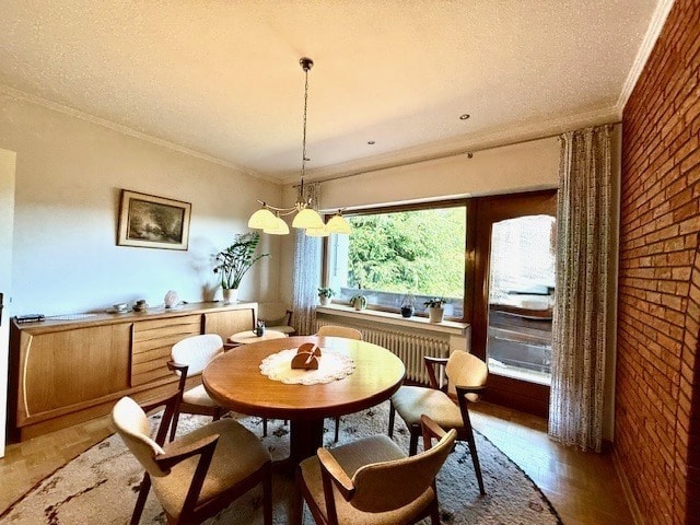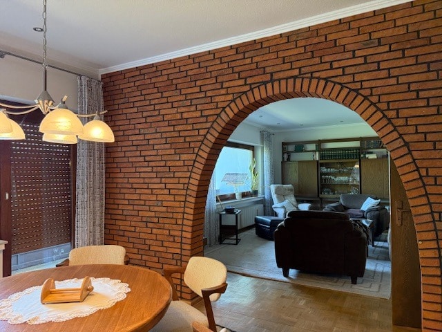 Die Immobilie wurde 1969 in massiver Bauausführung errichtet und bietet Platz auf zwei Etagen. So kommen Sie vom Hofeingang in das freundliche Entré und somit in die Wohnebene des Hauses, welche bereits hier ein vollausgestattetes Bad mit Badewanne zur Linken bietet. Im weiteren Verlauf erreichen Sie die Küche und den Wohn-Essbereich. Der hier vorhandene Balkon erstreckt sich über die gesamte Hauslänge und verspricht seinen Betrachtern einen atemberaubenden Weitblick über Vlotho. Ein Schlafzimmer vervollständigt diese Etage.