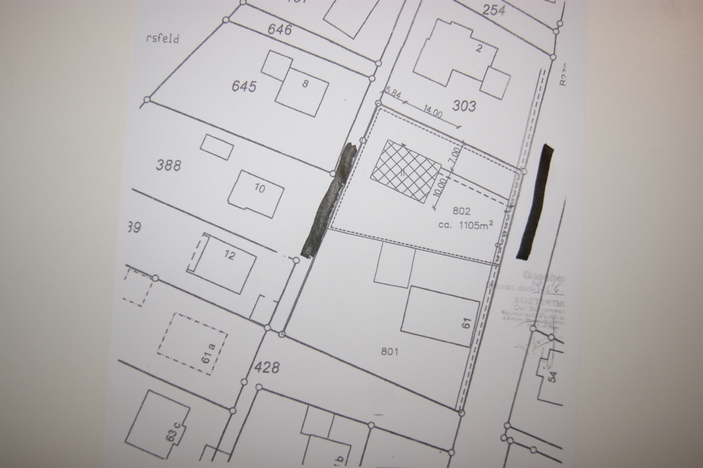 Das Grundstück liegt am Ende einer Sackgasse und wird über einen Privatweg erreicht.
