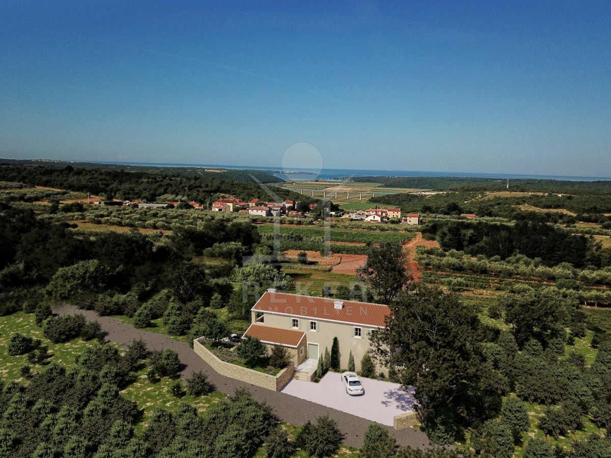 In der sanften Hügellandschaft bei Novigrad steht diese moderne Villa, die istrische Tradition und modernes Design harmonisch verbindet. Die Lage bietet Ruhe und Nähe zur Natur, gleichzeitig erreichen Sie Meer und Stadt in rund zehn Minuten mit dem Auto. Einkaufsmöglichkeiten, Restaurants, Schule, Kindergarten und medizinische Versorgung sind bequem erreichbar. Gesicherte Parkplätze befinden sich direkt auf dem Grundstück.
