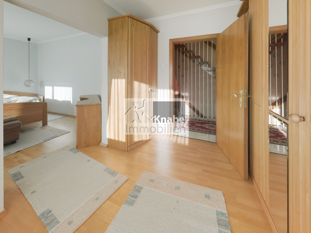 Das Obergeschoss eröffnet zusätzliche Freiheit: Ob als Rückzugsort für ältere Kinder, als eigener Wohnbereich für Großeltern oder als Homeoffice mit klarer Trennung von Ihrem Familienalltag – hier passen sich die Räume Ihren Bedürfnissen an. Auch eine separate Wohneinheit lässt sich perspektivisch realisieren und macht das Haus besonders attraktiv für generationenübergreifendes Wohnen oder Arbeiten von zu Hause.