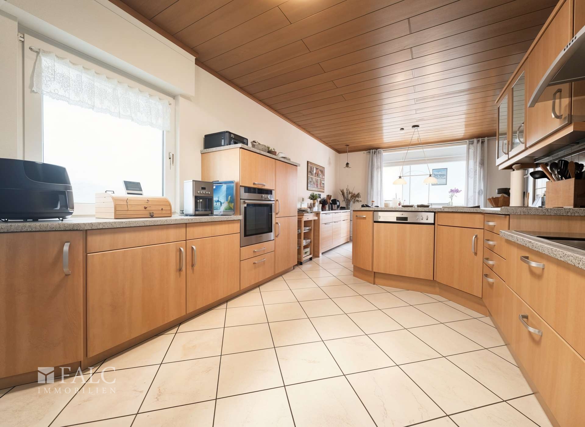 Der Wohnbereich wird durch einen Kaminofen ergänzt, der nicht nur als stilvolles Gestaltungselement dient, sondern an kühleren Tagen für eine besonders gemütliche Wohnatmosphäre sorgt. Die vorhandene Einbauküche verbleibt in der Immobilie und ist im Kaufpreis enthalten, was einen sofortigen Einzug ohne weiteren Aufwand ermöglicht.