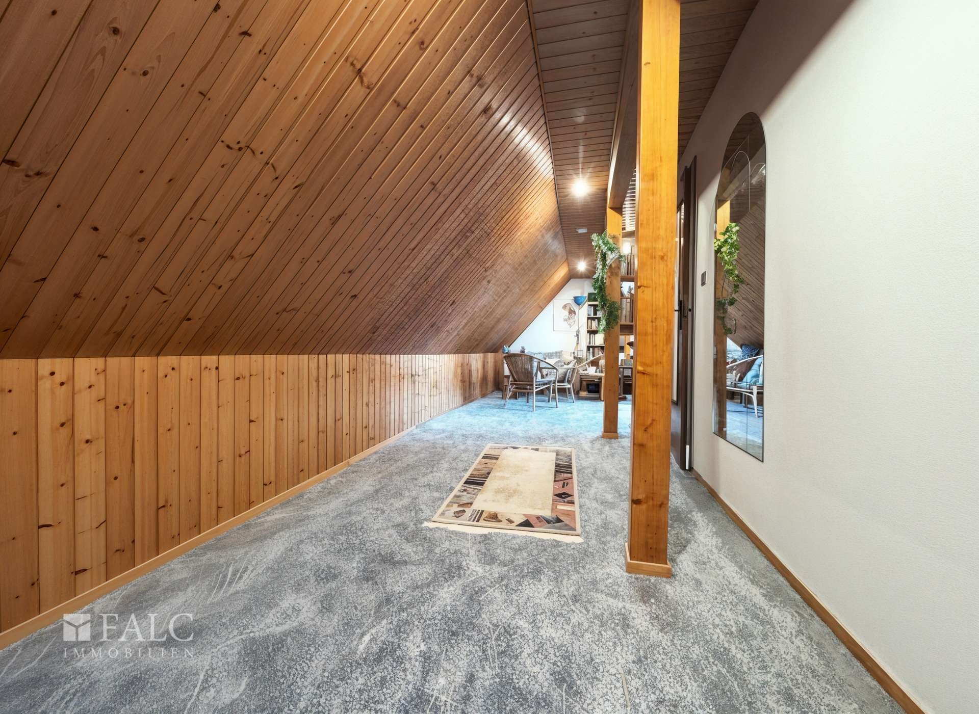 Im Innenbereich überzeugen die hochwertigen und durchdacht gewählten Bodenbeläge, die jeder Etage einen eigenen Charakter verleihen. Das Untergeschoss ist mit pflegeleichten Fliesen ausgestattet, während die Treppen in Holz ausgeführt sind und die Etagen optisch ansprechend miteinander verbinden. Im ersten Obergeschoss sorgt Laminat für eine warme und wohnliche Atmosphäre, während im ausgebauten Dachgeschoss ein Teppichboden zusätzlichen Komfort und Behaglichkeit bietet.