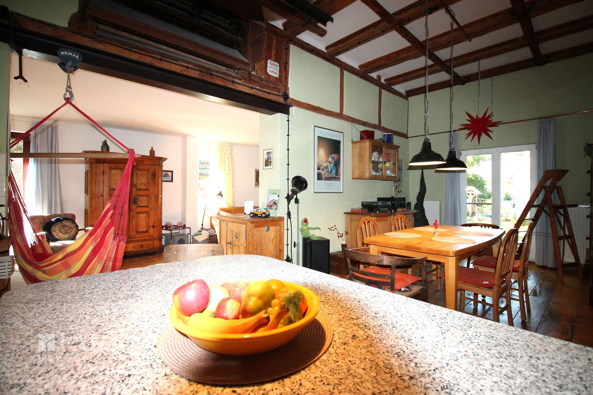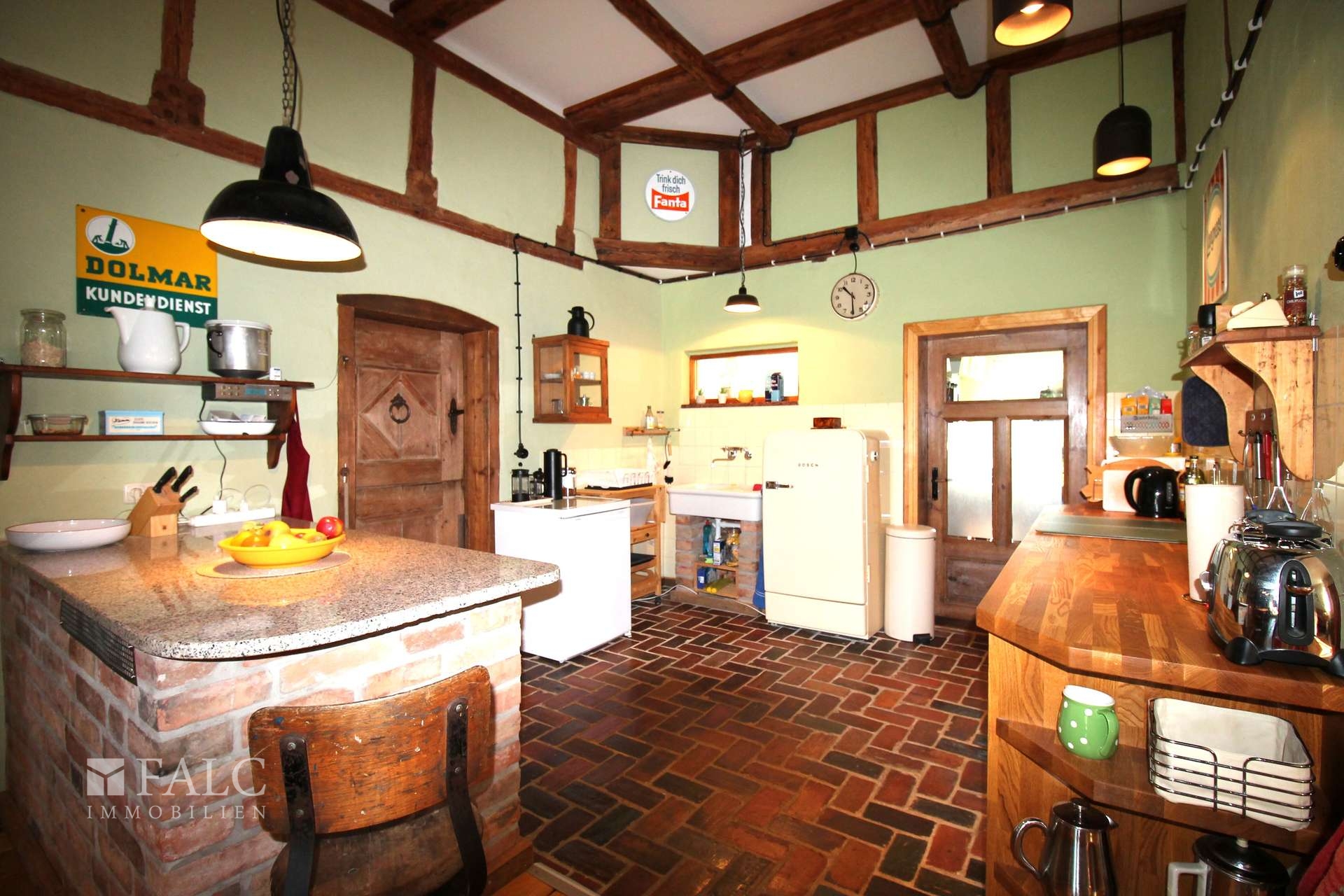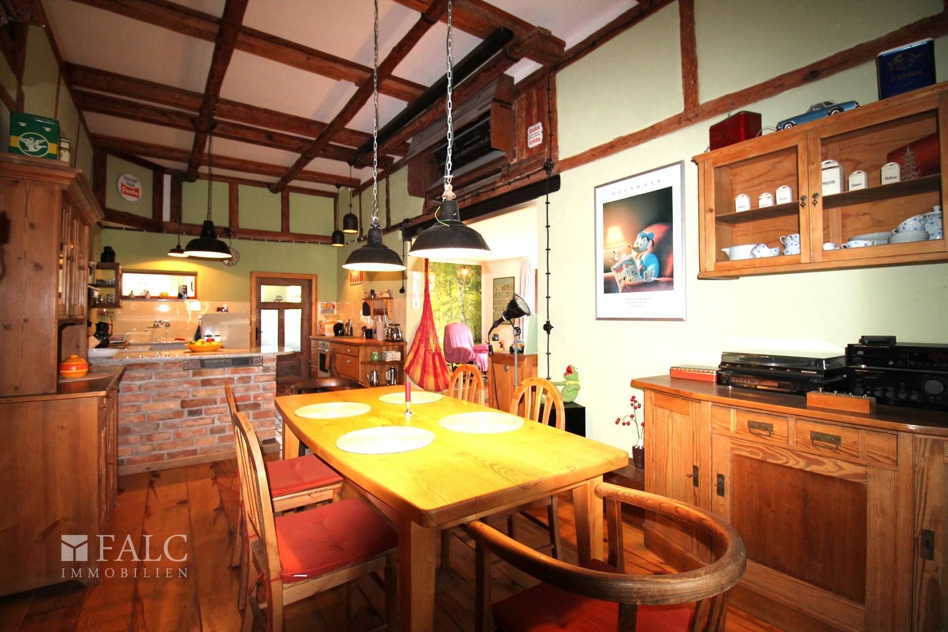 Beim Betreten dieses charmanten Hauses aus dem Jahr 1901 werden Sie von einer großzügigen Diele empfangen, die den Charakter der Immobilie aufzeigt und den Zugang zu den verschiedenen Bereichen des Erdgeschosses bietet. Die Küche, ausgestattet mit modernen Geräten, lädt zum gemeinsamen Kochen ein und geht nahtlos in den Essbereich über, der genügend Platz für gesellige Abende bietet. Hier finden wir uns in der Tenne wieder.