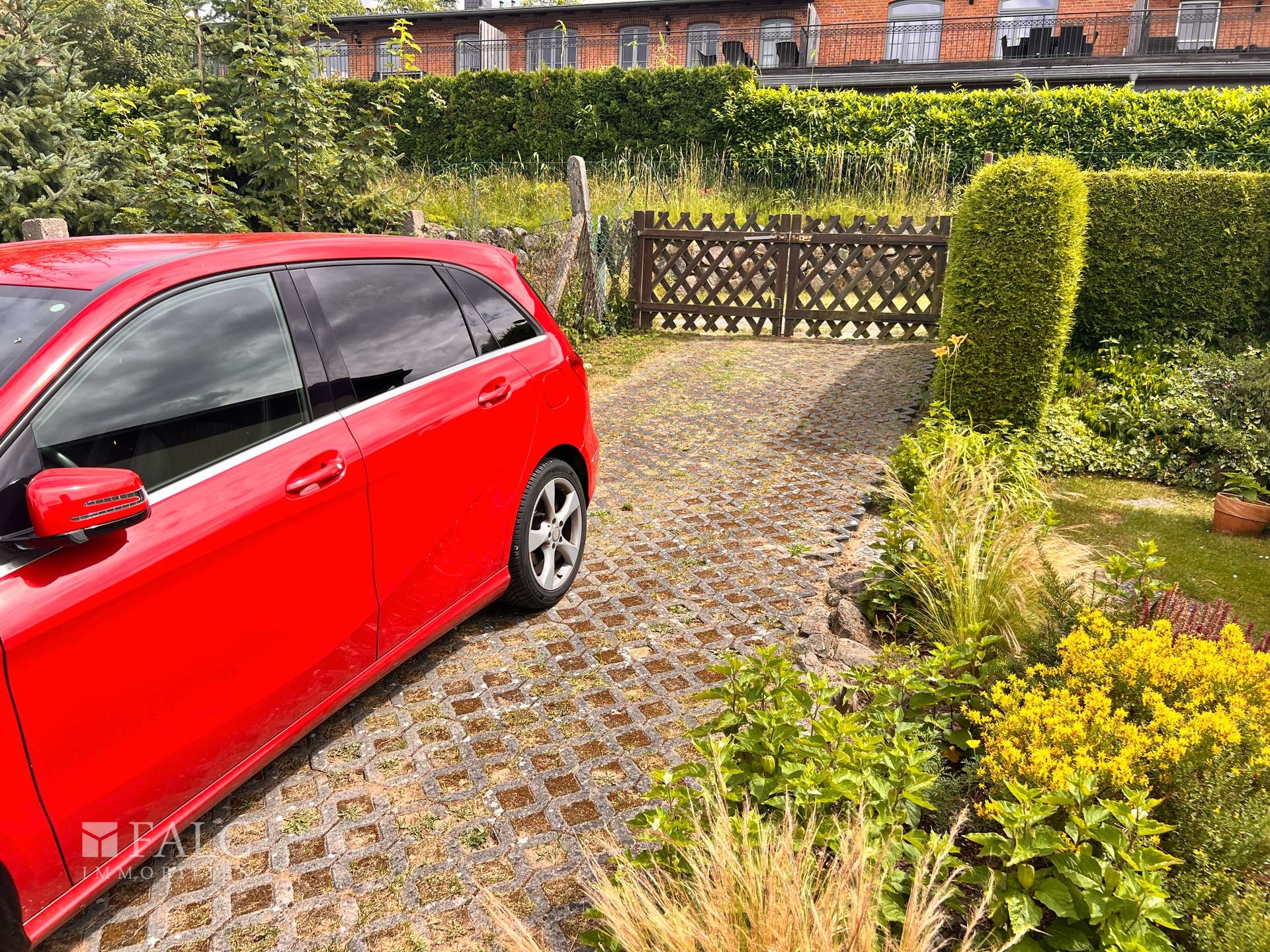 Zusätzlichen Stauraum bieten zwei Kellerräume. Ein kleinerer Raum eignet sich ideal als Abstellfläche oder Vorratskammer, während der zweite Kellerraum aktuell als Wasch- und Lagerraum für Gartenmöbel genutzt wird. Direkt vor dem Eingangsbereich befindet sich eine überdachte Terrasse, die zu entspannten Stunden im Freien einlädt. Eine zusätzliche Terrassenfläche vor dem Kellerbereich mit einem gemauerten Grill lädt zu geselligen Abenden und Sommerfesten ein.